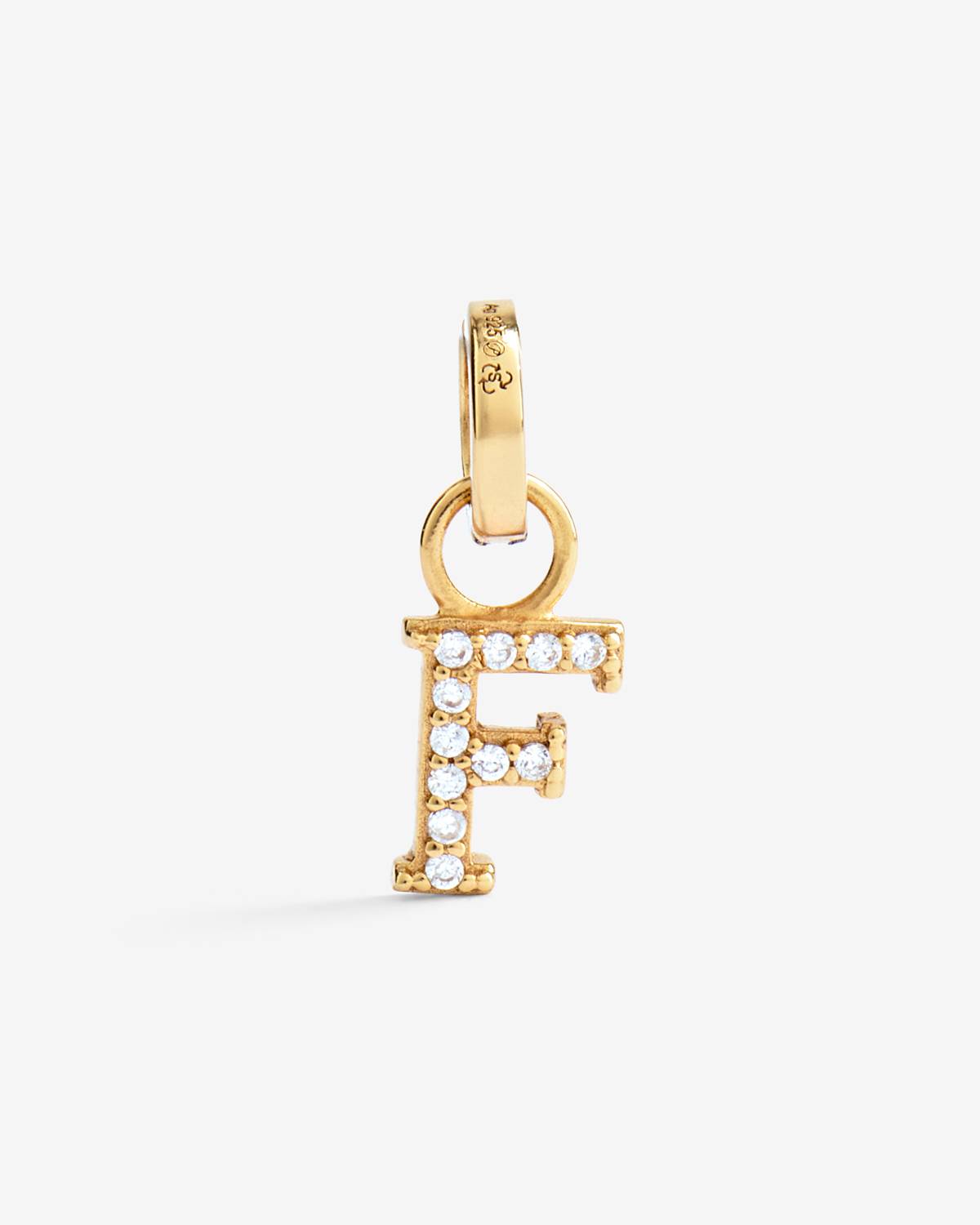 Dieser Anhänger verleiht jeder Kette eine persönliche Note. Das goldene F besteht aus recyceltem Sterlingsilber und ist mit 18kt Gold überzogen. Feine Zirkonia-Steine sorgen für ein verspieltes Funkeln am Hals oder Handgelenk. Dank der kleinen Öse lässt sich der Buchstaben-Charm von Pompidou an jede Lieblingskette anbringen.