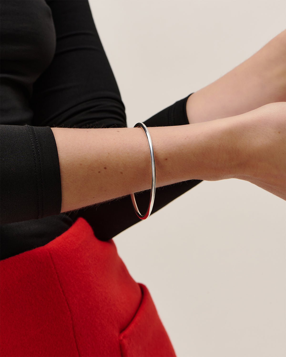 Der Alina Armreifen in Silber ist der Inbegriff von minimalistischer Eleganz. Clean, zeitlos und super vielseitig: Der schlanke, glatte Bangle passt zu jedem Look – von Casual bis Chic. Solo getragen wirkt er edel und pur, im Stack kombiniert bringt er sofort das gewisse Extra an Shine. Ein echtes Everyday-Piece, das immer funktioniert.