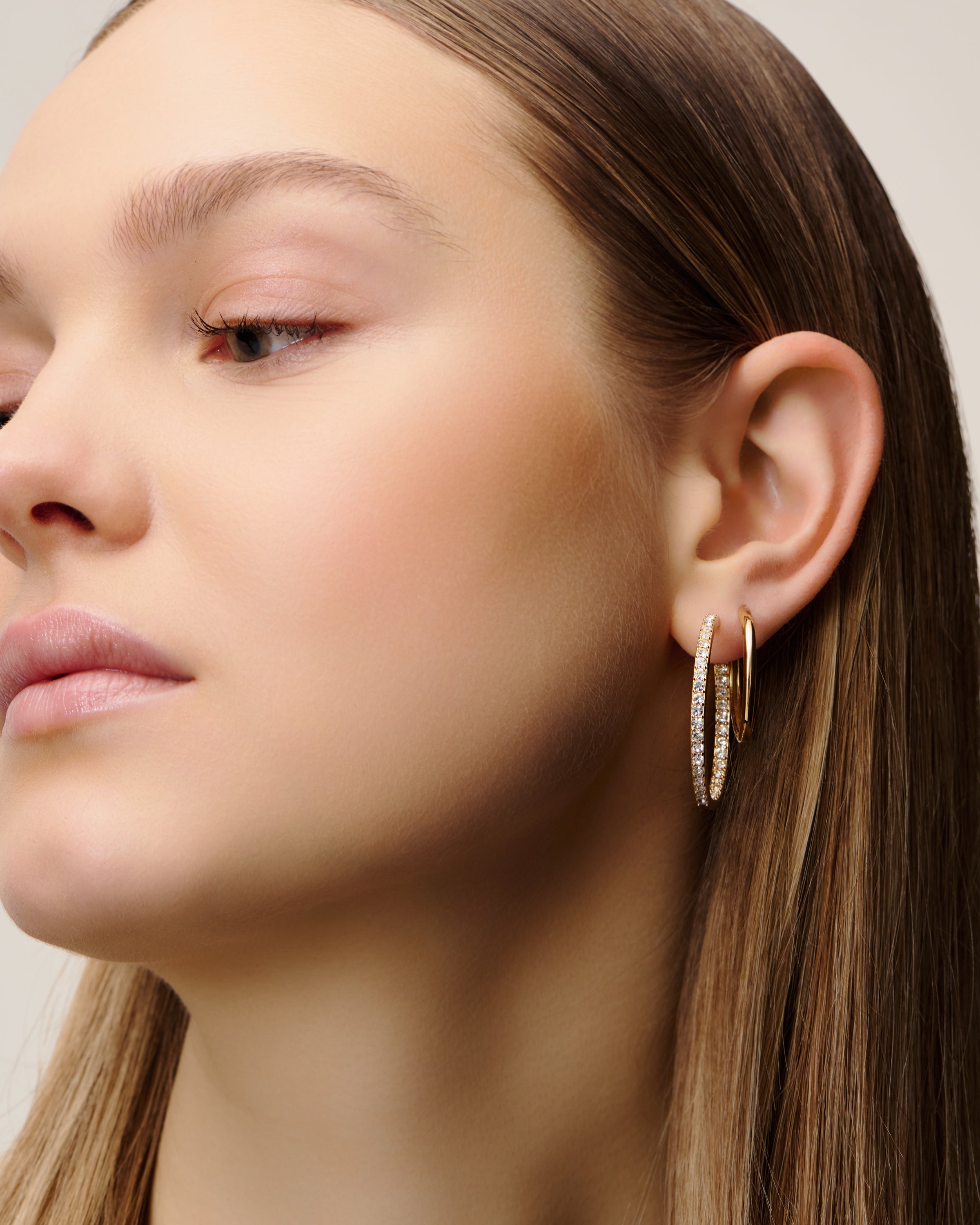 Mit diesen angesagten Hoops von Pompidou wird jeder Look zu einem echten Hingucker! Das schlichte Design der Huggies XL punktet mit einer hohen Tragevariation und verleiht jedem Outfit einen eleganten Hauch. Die Creolen sind aus vergoldetem recyceltem 925er Silber gefertigt. Auf Instagram gehören sie zu den momentanen Top-Trends und sollten in keiner Schmucksammlung fehlen.