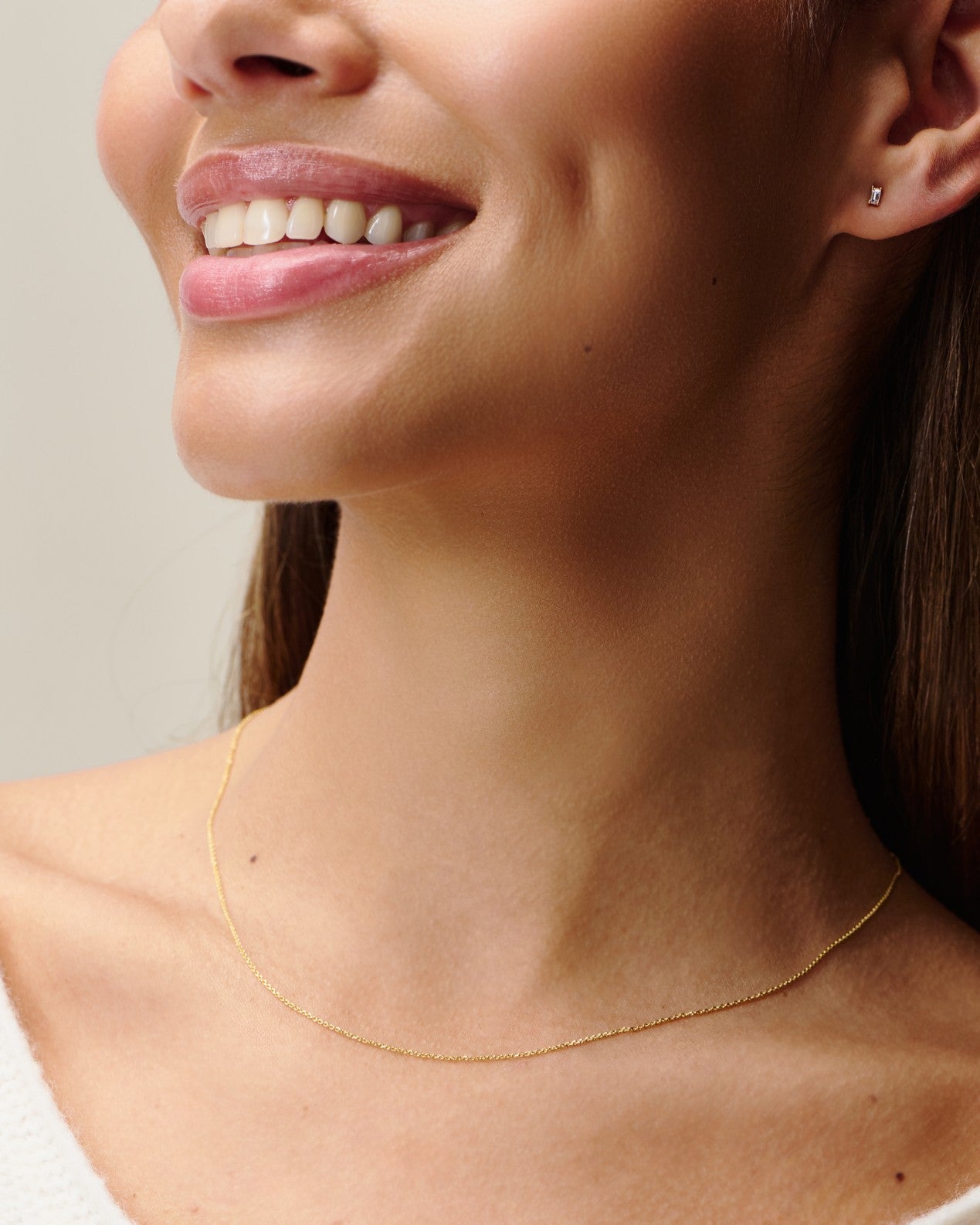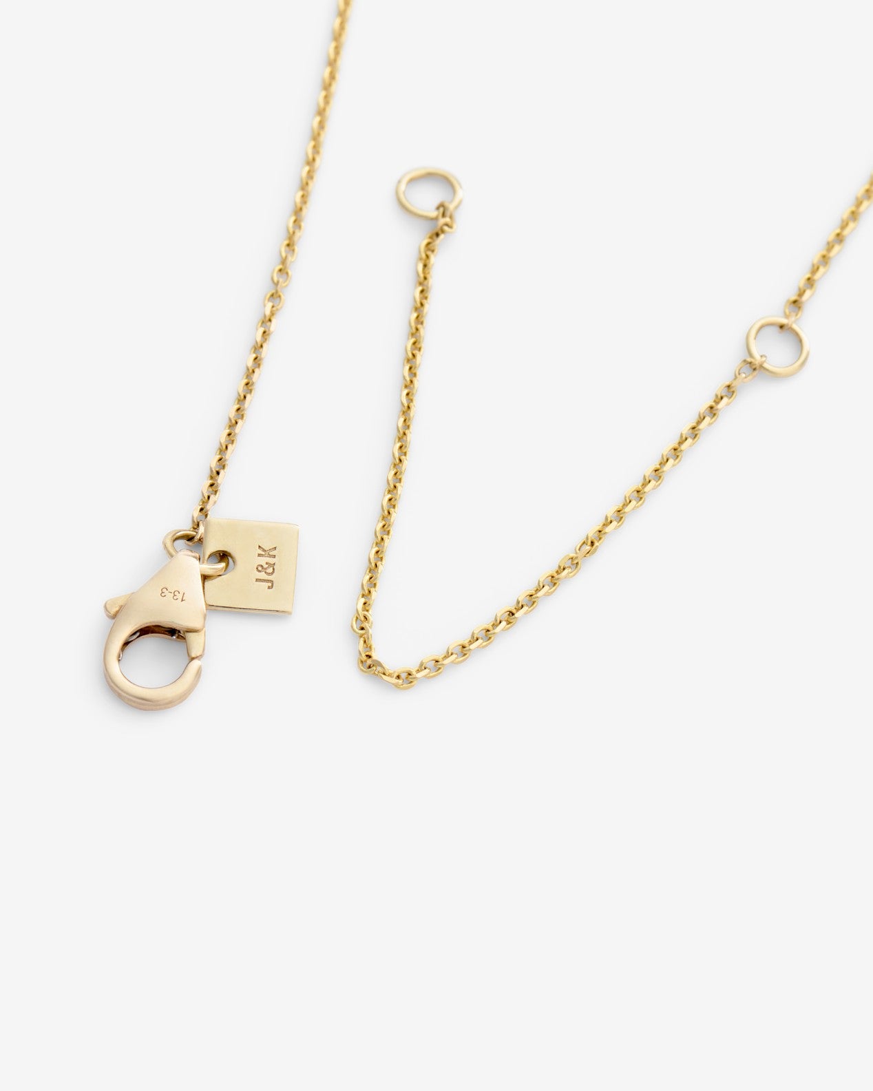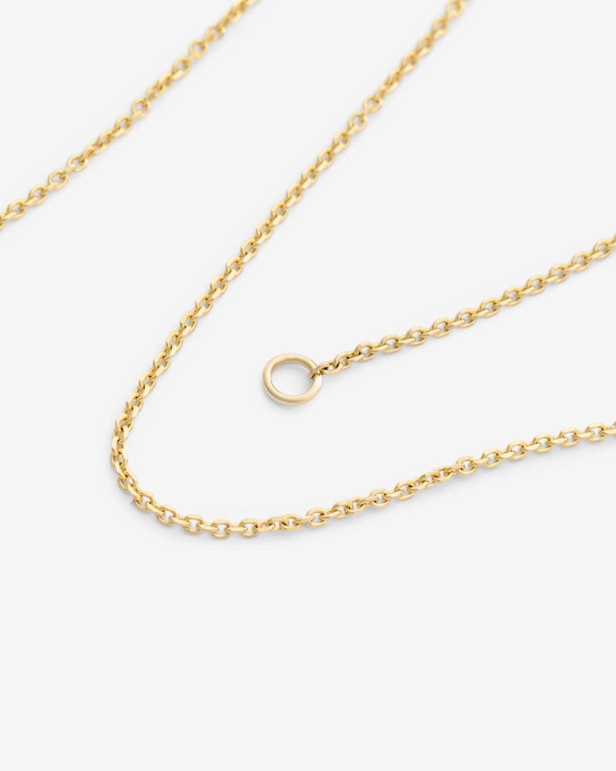 Die Chain 001 von Juuls & Karats ist ein zeitloser Klassiker. Die filigrane Kette aus 14kt Gold besticht durch ihr schlichtes Design und lässt sich wunderbar solo tragen oder mit funkelnden Charms individuell gestalten. Ein Must-have für alle, die minimalistische Eleganz und hochwertige Handwerkskunst aus Antwerpen schätzen.
