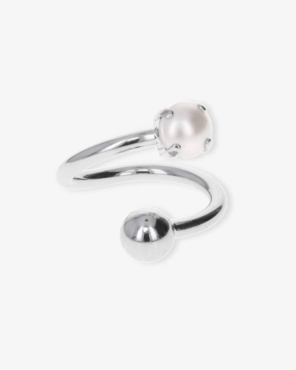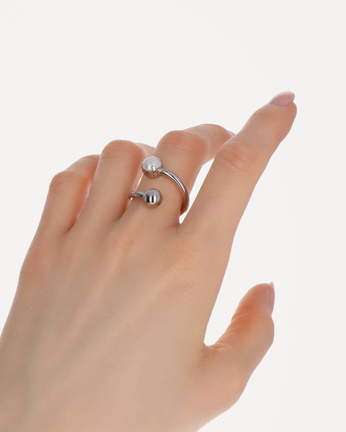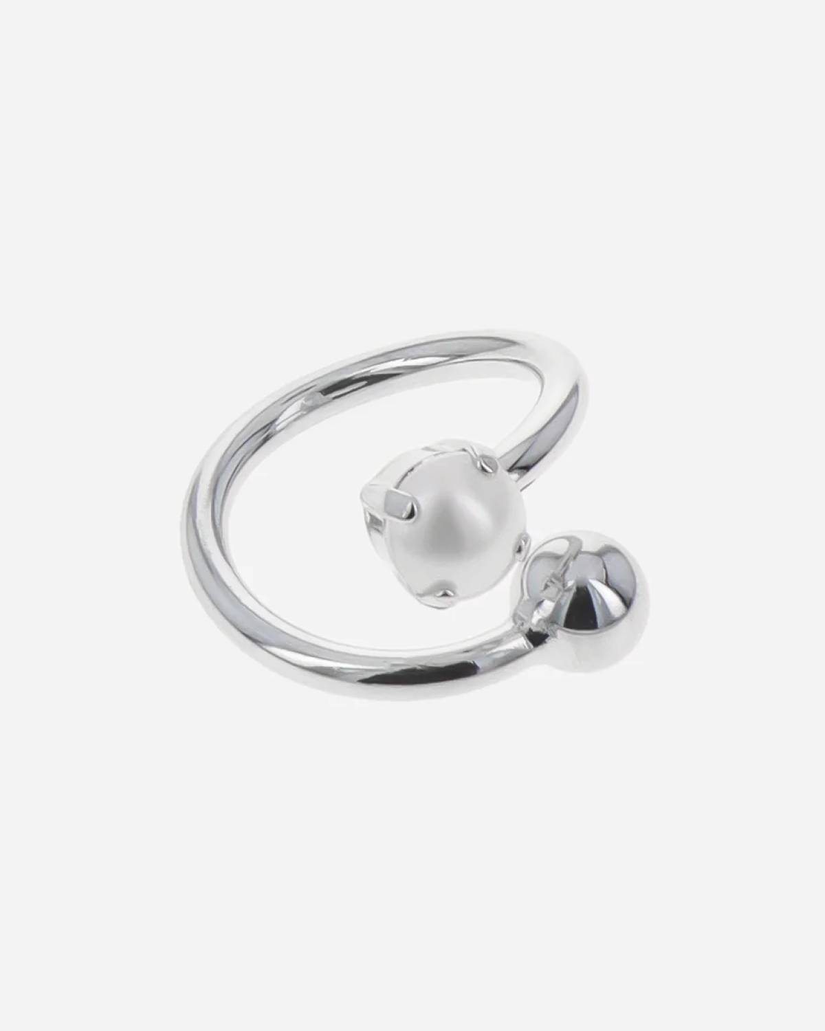 Geometrie mit Gefühl: Der Coco Ring verwandelt klare Linien in Bewegung. Palladium und Perle treffen sich auf halbem Weg – ein Design, das Leichtigkeit und Struktur perfekt vereint.