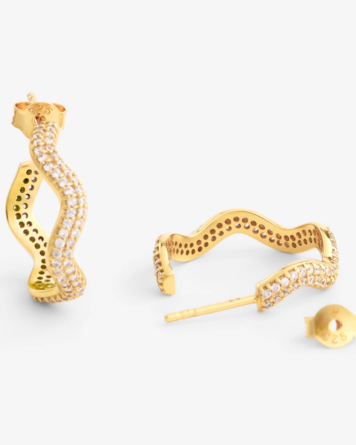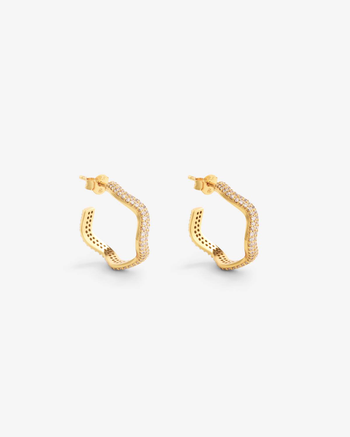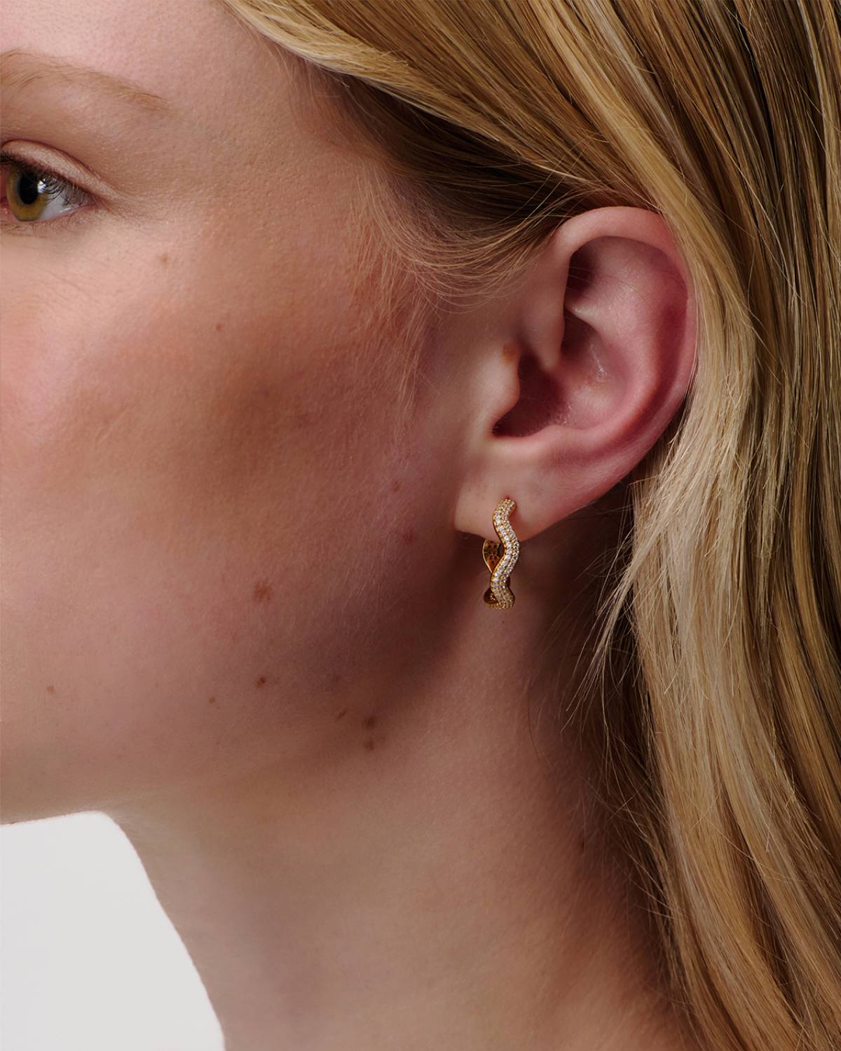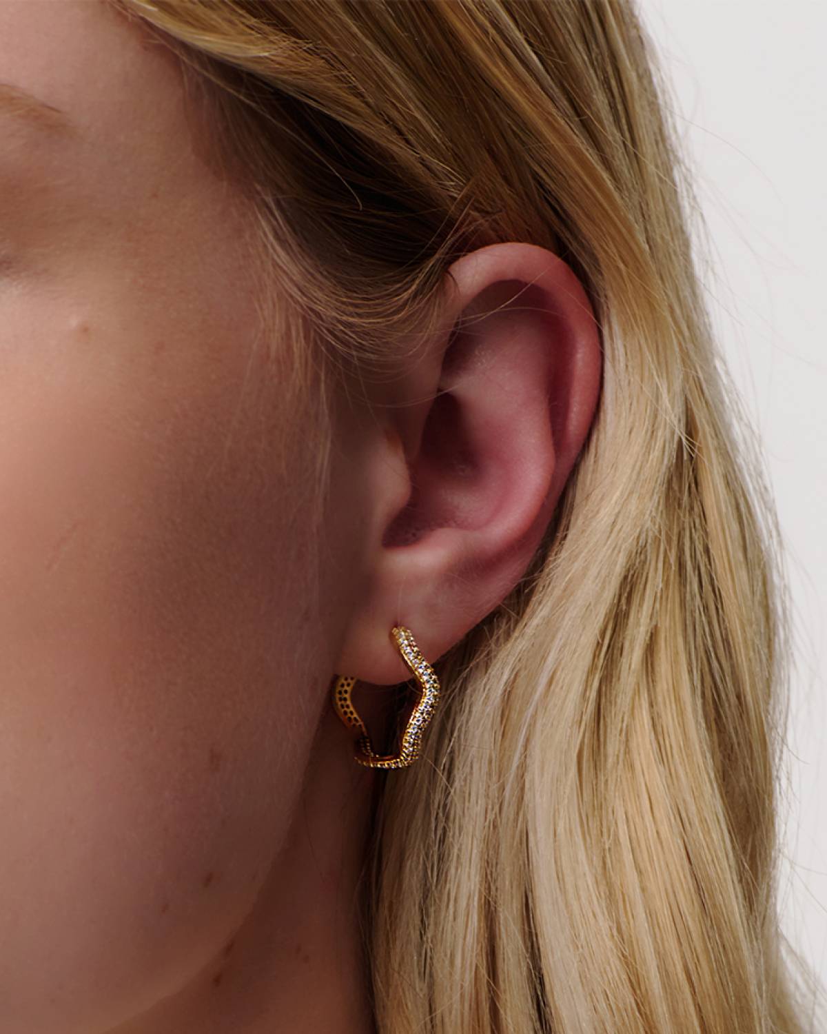 Amelia bringt Bewegung ins Spiel: Die geschwungene Linie in 18kt Vergoldung, verziert mit White Zirconia, erinnert an fließende Rhythmen. Sie unterstreicht deinen Style mit Leichtigkeit – mal cool im Streetstyle, mal raffiniert im Mix mit weiteren Pieces. Ein Design, das immer frisch und individuell wirkt.