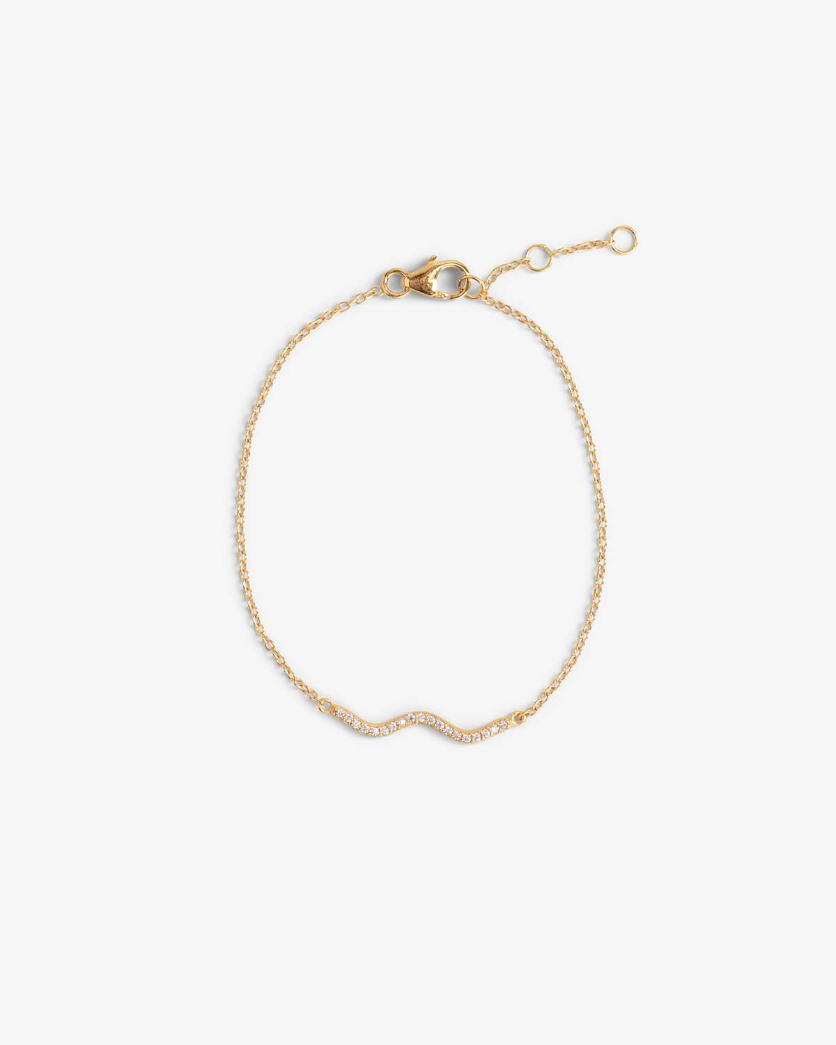 Lili bringt das ikonische Wellen-Design jetzt ans Handgelenk. Das Armband aus 18kt Vergoldung, verziert mit White Zirkonia, wirkt fein und zugleich besonders. Ein Schmuckstück, das mit seiner klaren Linie Akzente setzt und sich vielseitig kombinieren lässt.