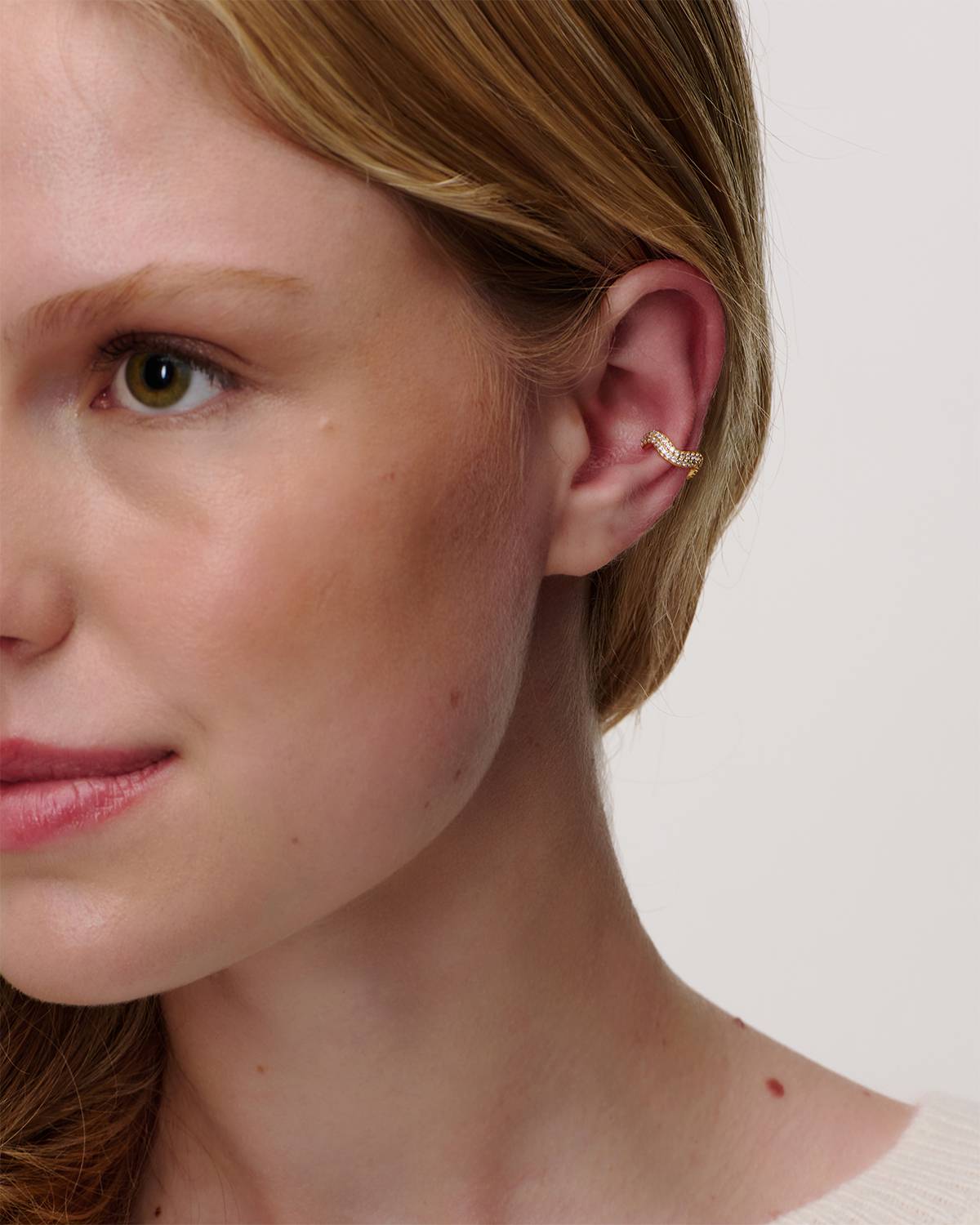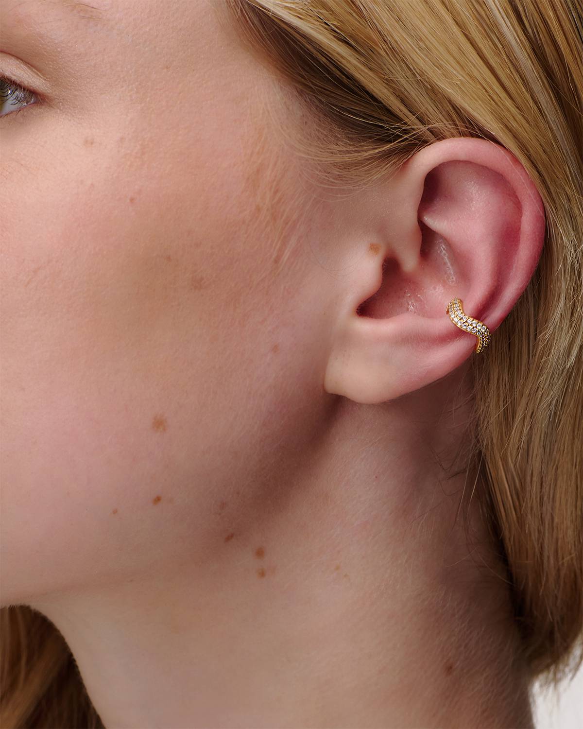 Theresa bringt doppelte Strahlkraft! Dieser 18kt vergoldete Earcuff mit zwei Reihen funkelnder White Zirconia sorgt für einen markanten, stylischen Look – ganz ohne Ohrloch. Er lässt sich easy kombinieren, ob mit schlichten Steckern oder als Highlight im Ear-Stacking. Bold, trendy und ein Accessoire, das deinem Style das gewisse Extra verleiht.