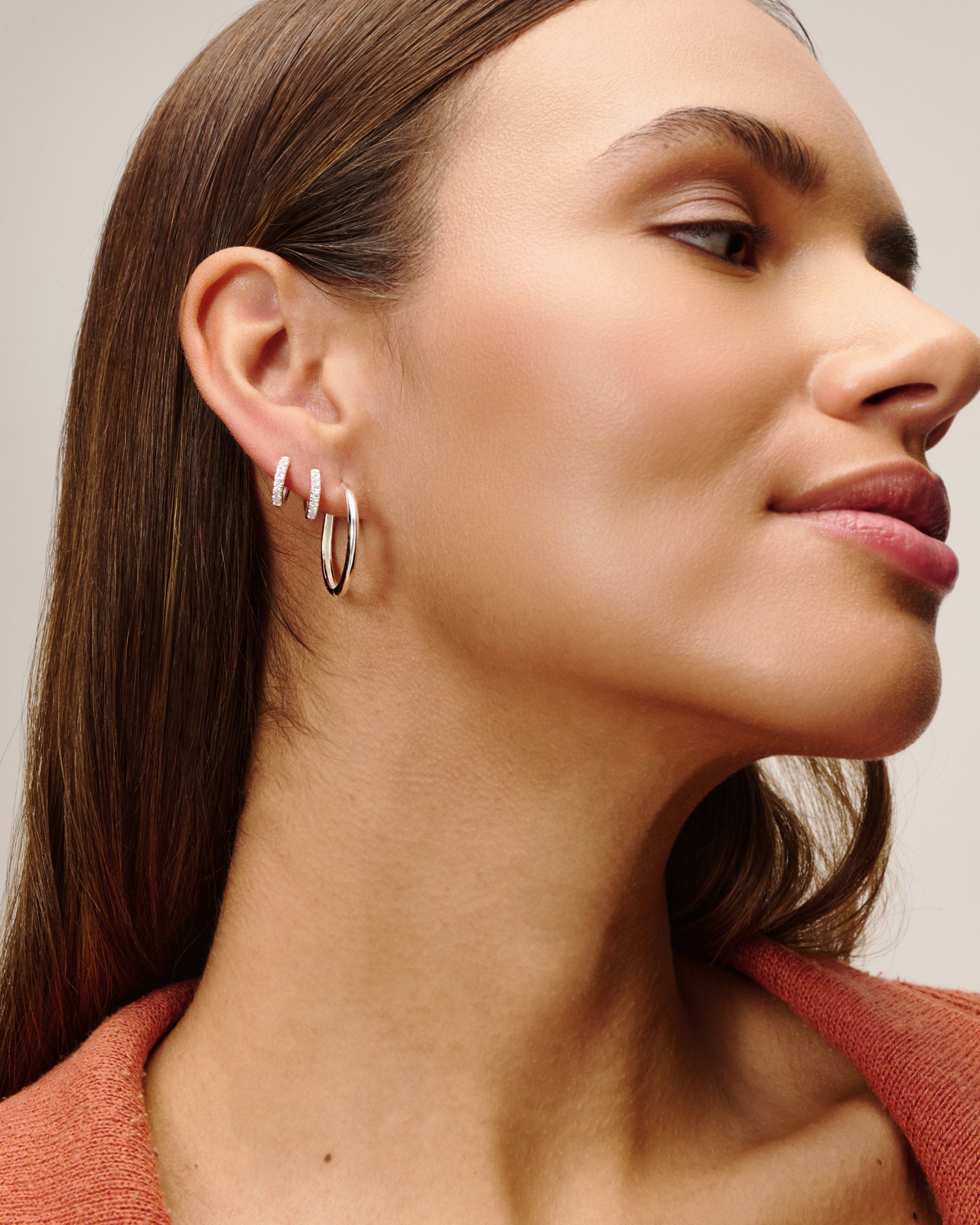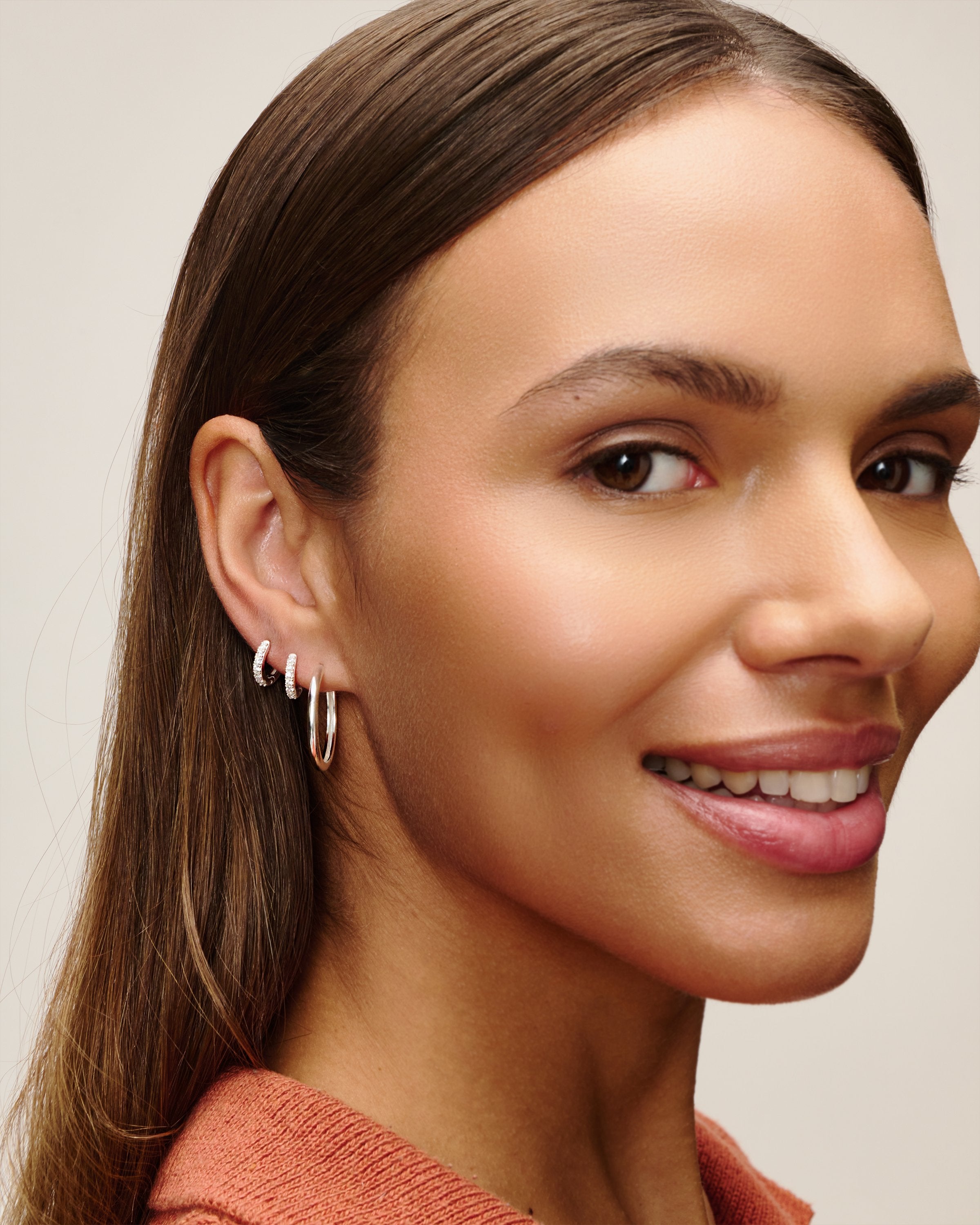 Die Lillian Micro Pavé Creolen sind recyceltem Sterlingsilber gehalten und mit funkelnden Zirkonia verziert. Sie verleihen deinem Outfit einen zeitlosen, eleganten Touch. Besonders das filigrane Design sowie die glamourösen Details bestechen mit ihrem minimalistischen und doch extravaganten Look.