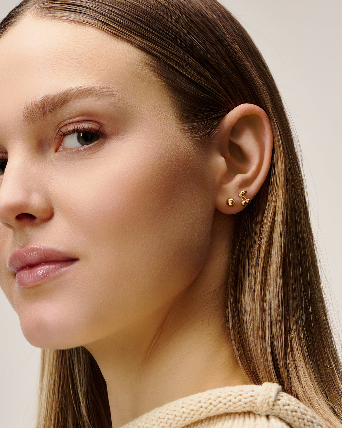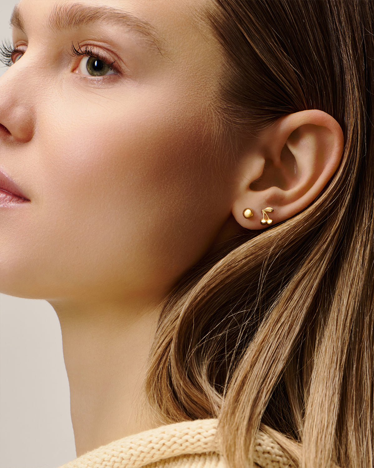 Sweet like summer! Die Cherry Studs in 18kt Vergoldung bringen verspielte Vibes und goldenen Glanz ans Ohr. Das zarte Kirsch-Design sorgt für einen Hauch Retro-Charme mit modernem Twist – perfekt, um jedem Look eine Portion Fun & Freshness zu verleihen.