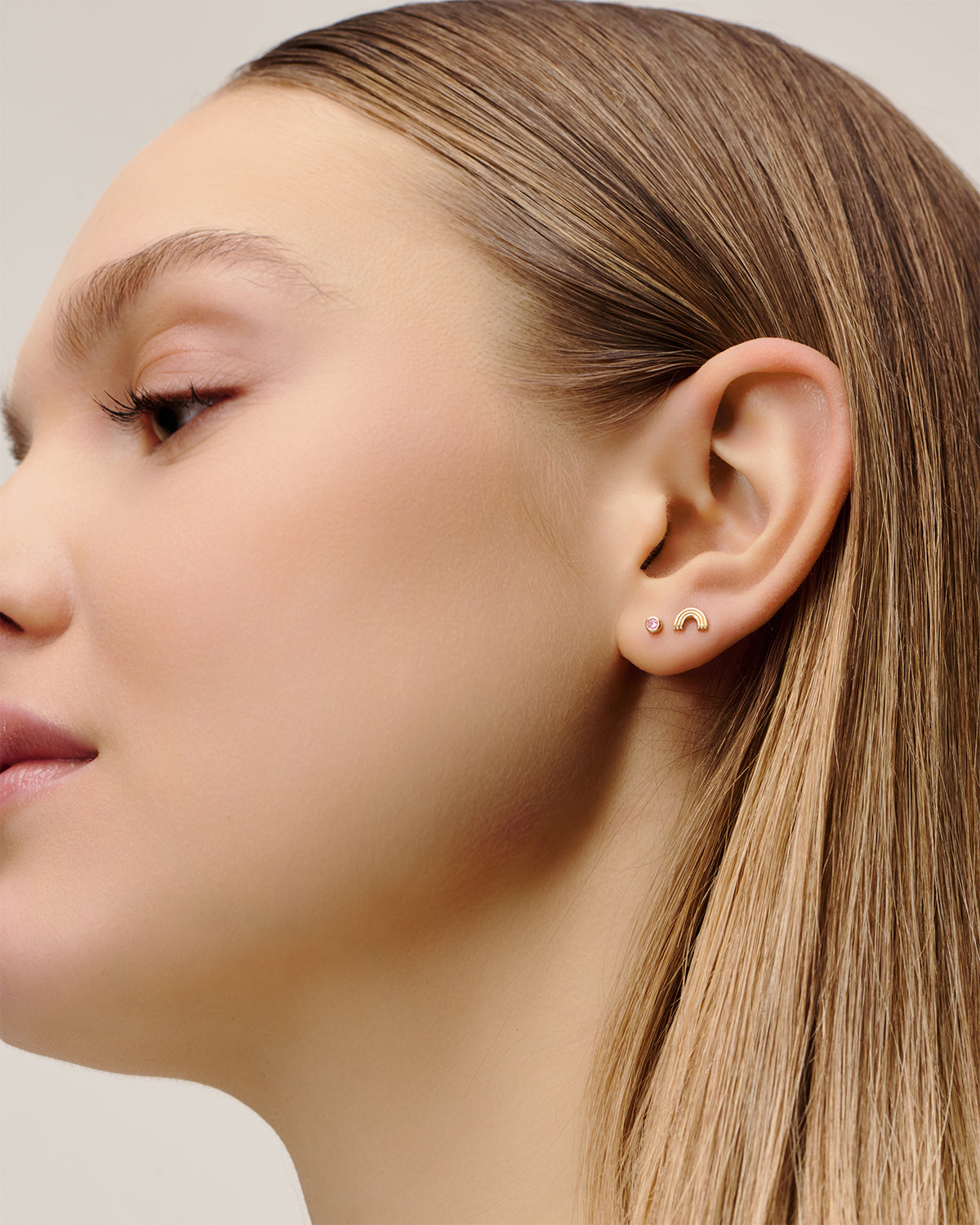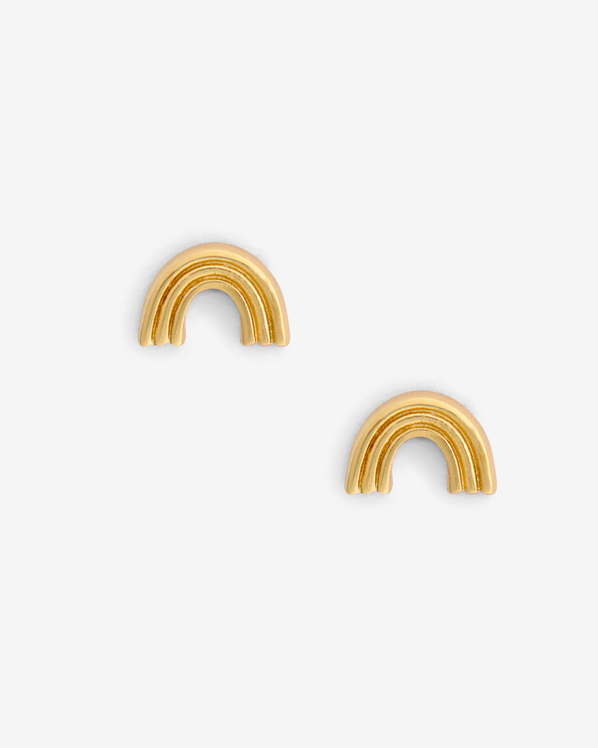 Golden glow all the way! Die Golden Rainbow Studs in 18kt Vergoldung bringen mit ihrem cleanen, goldfarbenen Bogen-Design pure Eleganz und Positivity ans Ohr. Dezent, modern und super vielseitig.
