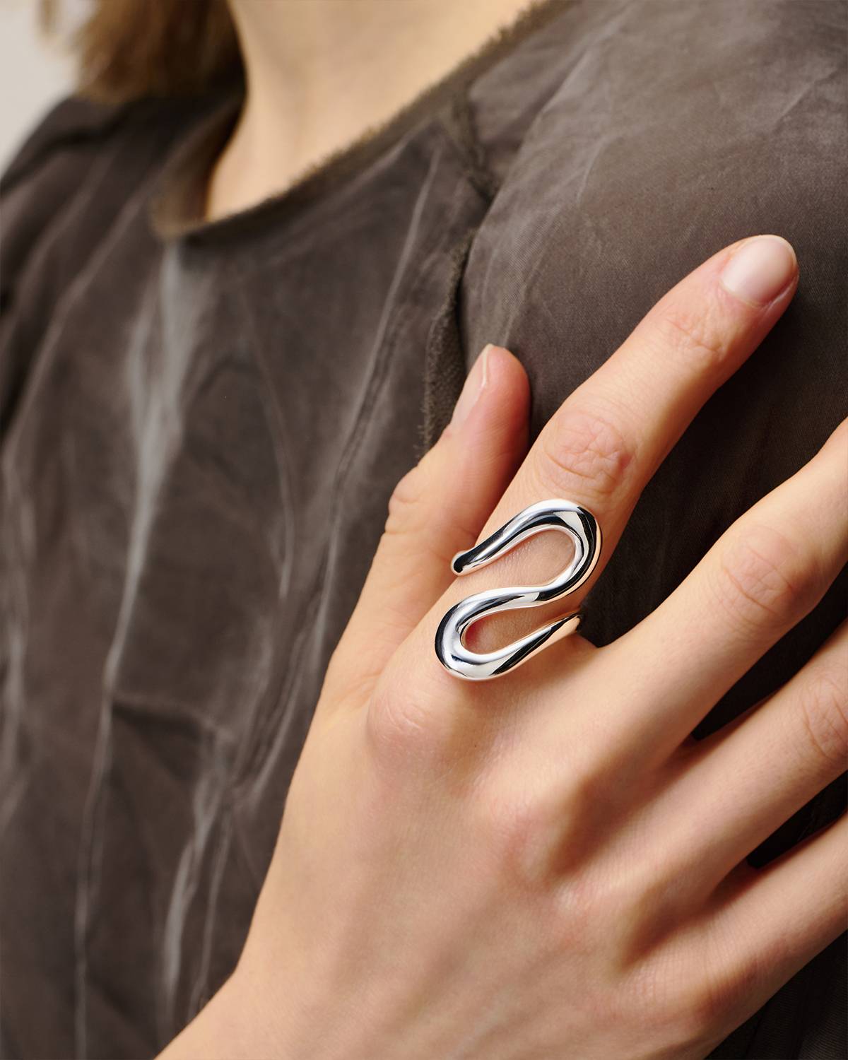 Der Solin Curve Ring von Pompidou fasziniert durch seine fließende, kunstvolle Silhouette. Die geschwungene Form wirkt modern und harmonisch zugleich – wie eine Welle, eingefangen in glänzendem Silber. Das edle Silber-Plating verstärkt den skulpturalen Charakter und schenkt dem Design kühle Eleganz. Ein kreatives Statement mit klarer Formensprache und zeitloser Schönheit.