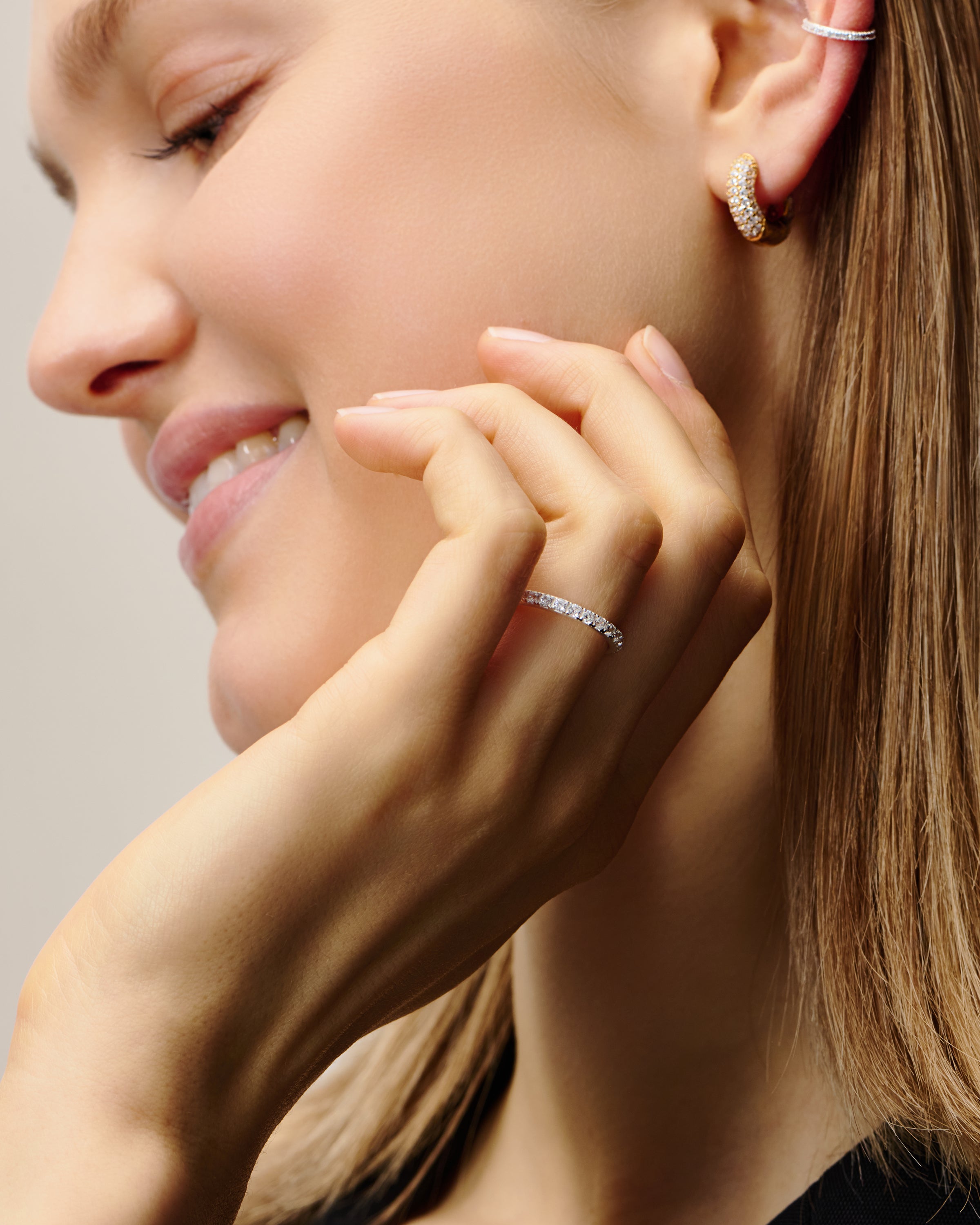 Wir stellen den neu entworfenen 'Bling Ring' von Luisa vor - der Gründerin & Designerin von OHH LUILU: ein zartes Schmuckstück mit Zirkoniasteinen, gefasst in 100% recyceltem Silber. Er ist leicht und perfekt für das tägliche Tragen geeignet und somit die perfekte Basis für jeden Ring Stack. Seine glatten Kanten und sein dezentes Design machen ihn zu einer eleganten Ergänzung für jeden Look, ob tags- oder abends! Mit seiner zeitlosen Eleganz und einzigartigen Qualität wird dieser Ring sicher ein Favorit unter Schmuckliebhabern werden.