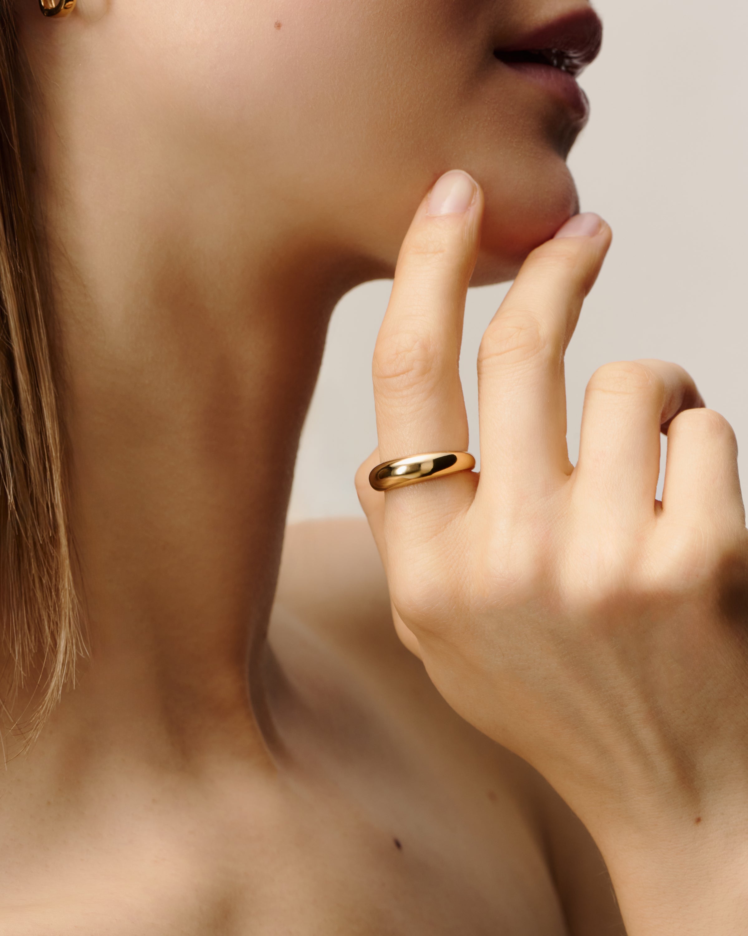 Minimalistisch, elegant, vielseitig - dieser Pompidou-Ring ist aus Sterlingsilber gefertigt und mit 18kt. vergoldet. Der Ring funkelt intensiv und zieht mit seinem glamourösen Funkeln alle Blicke auf sich. Ob solo oder in Kombination mit anderen Ringen, Fashionistas machen mit diesem stilvollen und trendigen Accessoire alles goldrichtig.