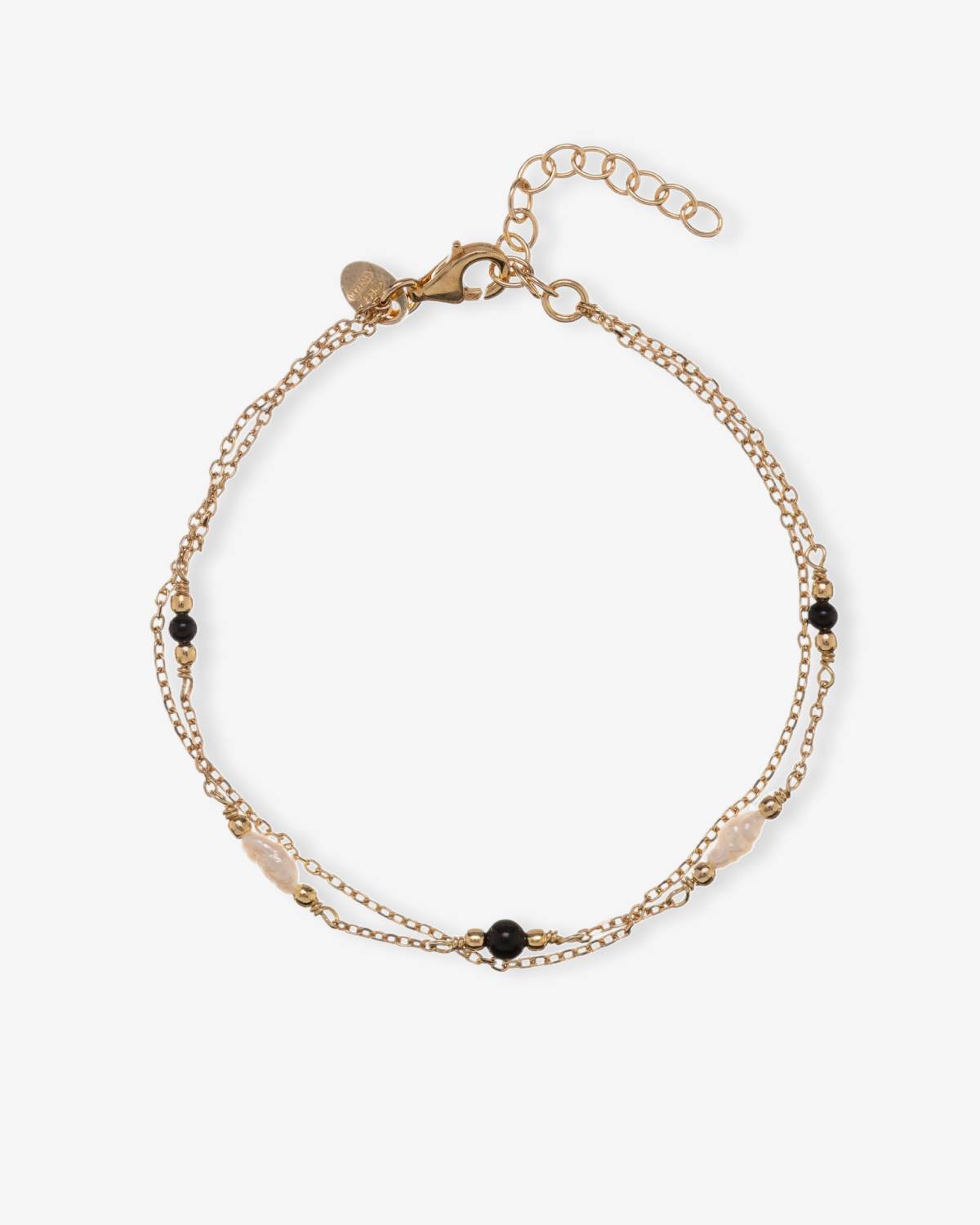 Feine Linien, doppelt so charmant: Das Avalon Double Armband spielt mit zarten Ketten, die sich elegant um das Handgelenk schmiegen. Schimmernde Perlen treffen auf geheimnisvollen Labradorit – ein spannendes Wechselspiel aus Licht und Struktur. Das 18kt vergoldete Finish verleiht jedem Detail warmen Glanz und macht das Armband zum dezenten, aber besonderen Hingucker.