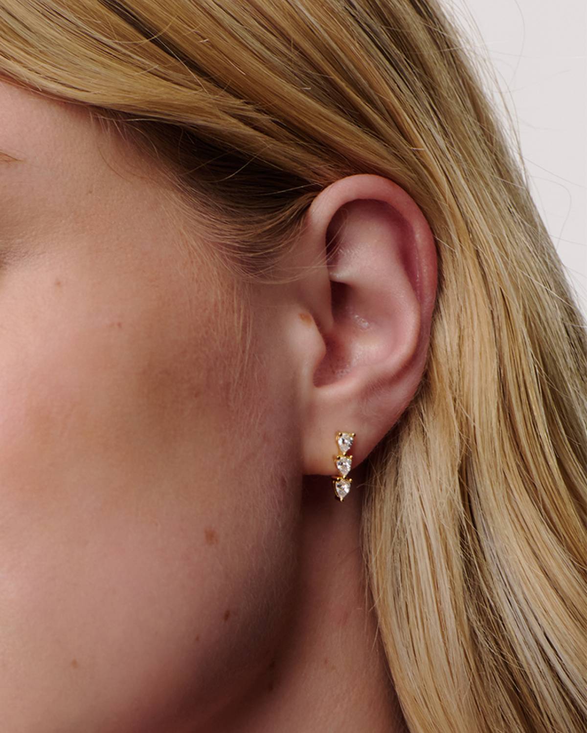 Die Pear Drop Mini Earrings in 18kt Vergoldung bringen edlen Glow und funkelnde white zirconia Steine ans Ohr. Das tropfenförmige Design schwingt bei jeder Bewegung mit und fängt das Licht perfekt ein – für deinen Daily Sparkle oder den Extra-Glam am Abend! Pure Eleganz trifft verspielten Chic.