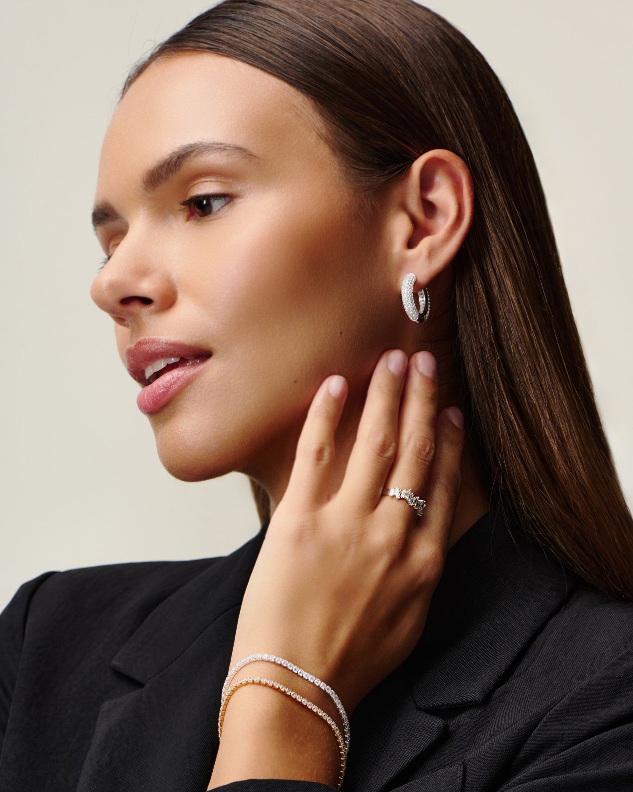 Das beliebte Tennis Bracelet, eine wahrer Klassiker, der in keiner Schmucksammlung fehlen sollte. Als Herzstück der Marke vereint das Statement-Piece Qualität, Stil und Raffinesse. Das Armband ist aus 18kt vergoldetem Sterlingsilber gefertigt und mit Zirkonia Steinen besetzt, die bei jedem Lichtstrahl ein atemberaubendes Funkeln erzeugen, ob in Rainbow Colors, Pink, Grün oder in Weiß.