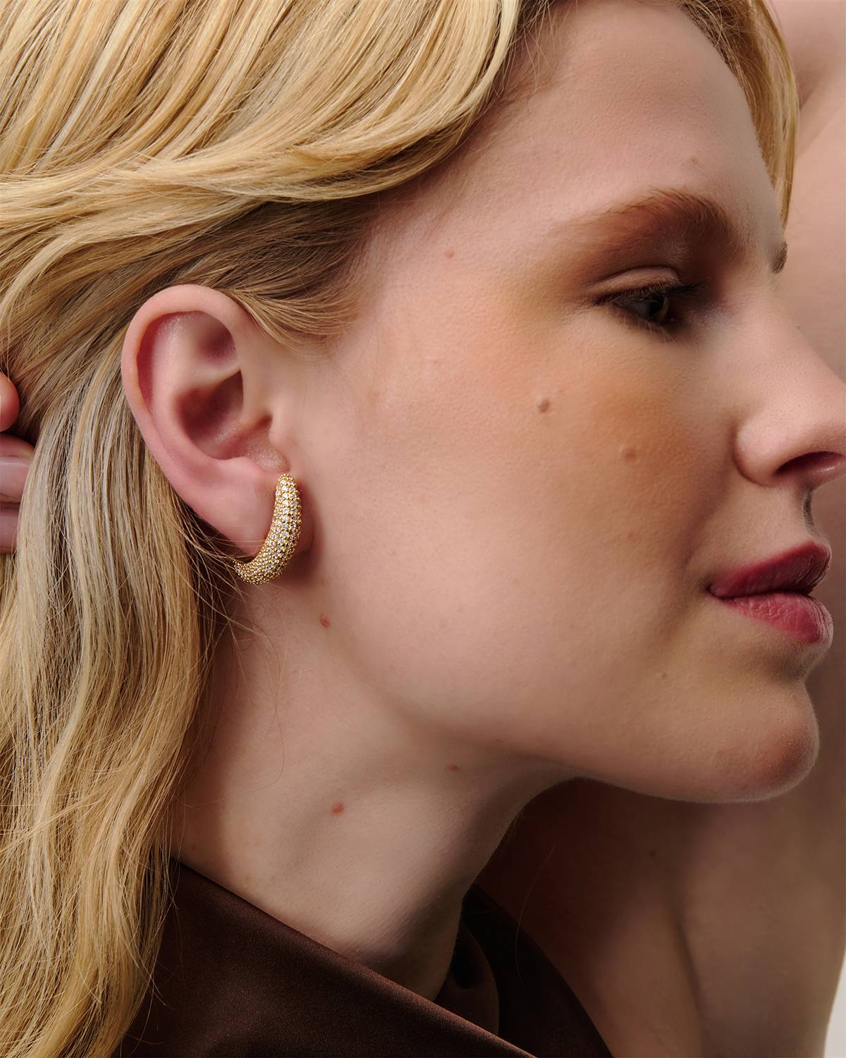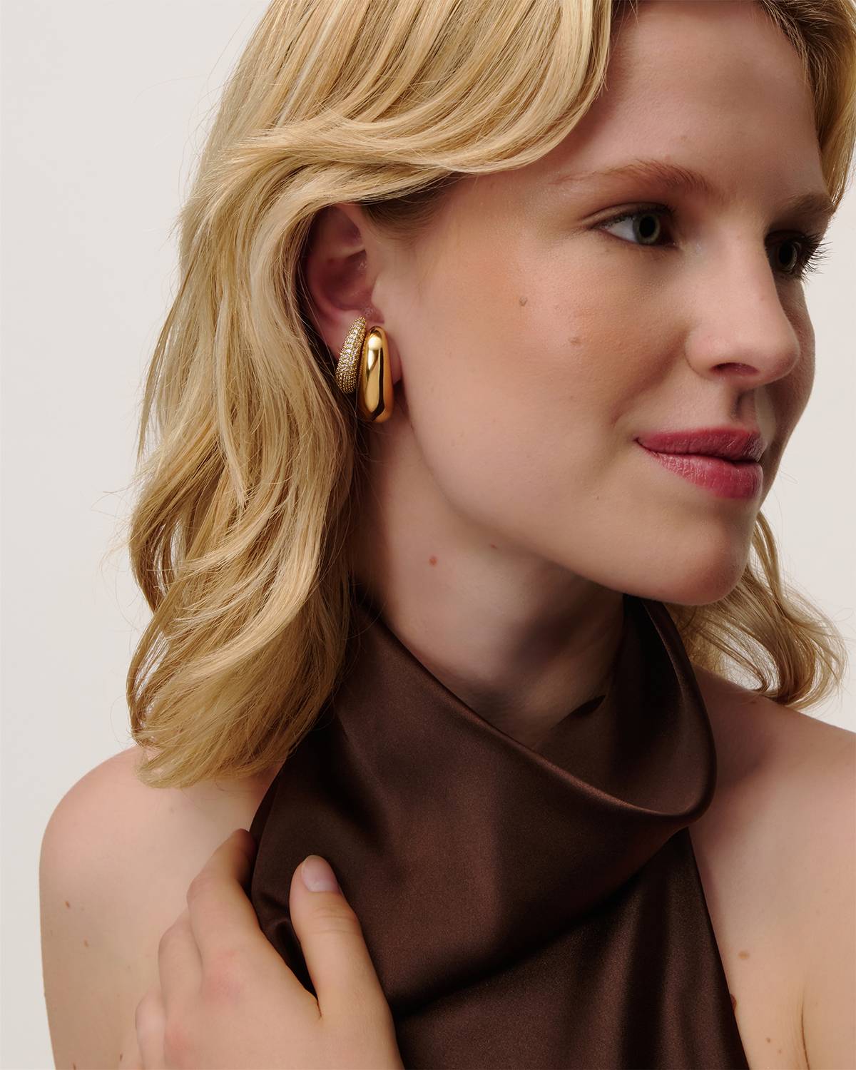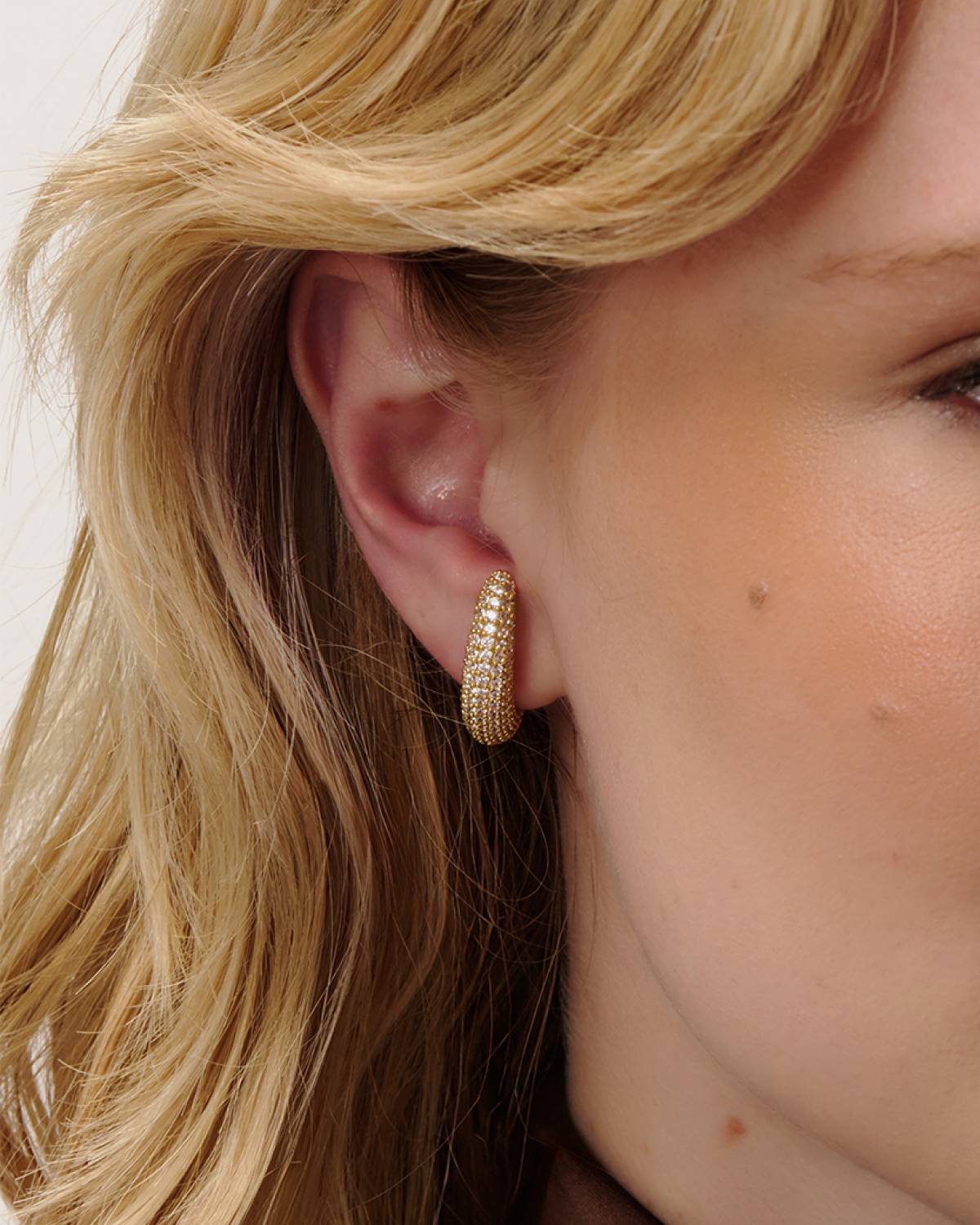 Tiny but full of sparkle! The Amara Mini Pavé Stud brings pure brilliance to your ear game with its softly curved line and sparkling pavé zirconia. The 18kt gold plating enhances the glam factor – a small stud with big impact that instantly elevates any outfit.
