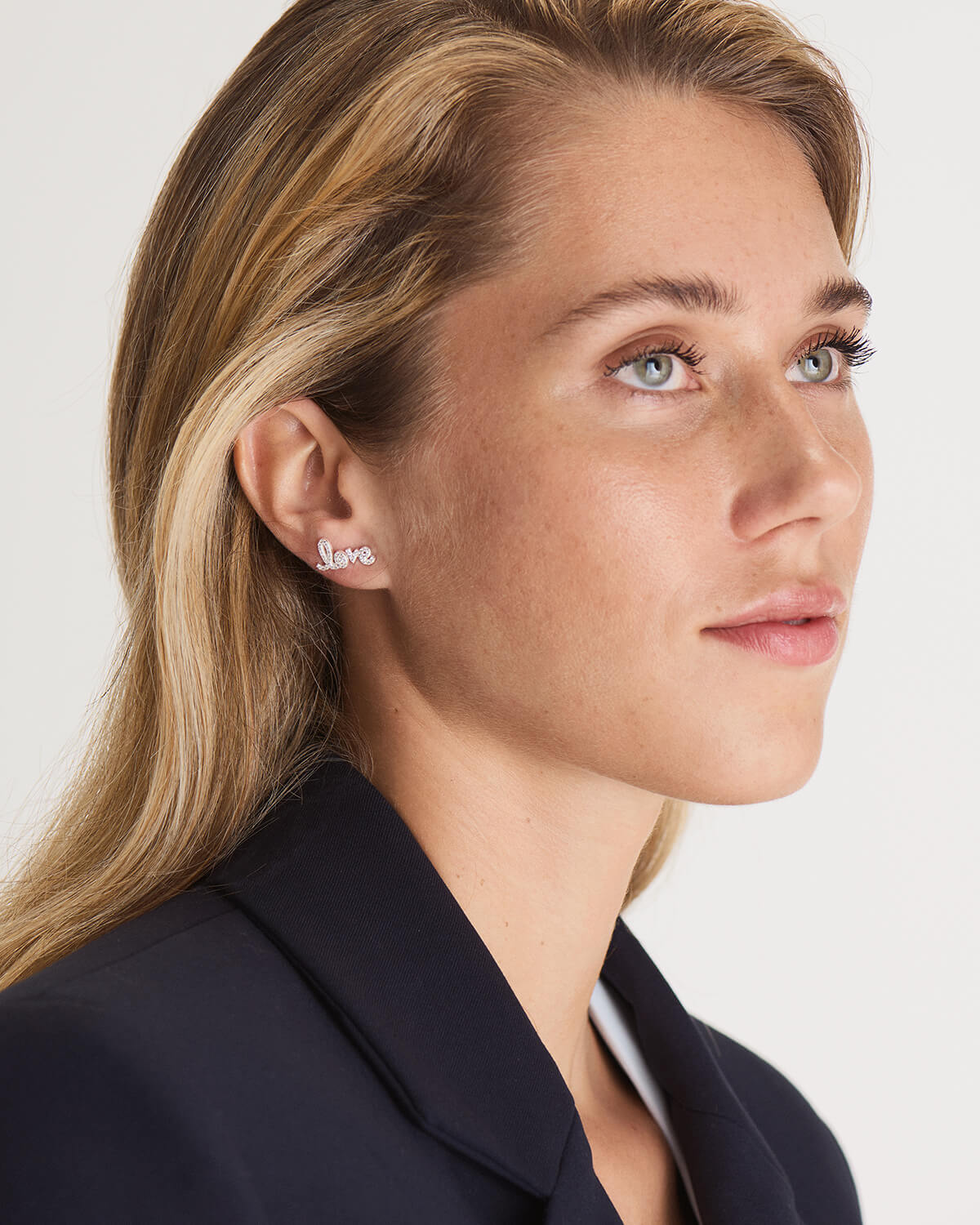 If you are looking for love and a reminder of this love, then the Love ear studs are just the thing for you. Made from 100% recycled sterling silver, the Love stud earrings are designed to remind you of love every day. Their delicate design can be worn with confidence - what better way to remind you of your love for someone special?