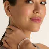 The Bolder Tennis bracelet in silver takes your shine to the next level. The larger 3 mm zirconia makes it the highlight on your wrist. Wear it solo for subtle glam or mix it with your favorite pieces for a statement stack that will turn heads.