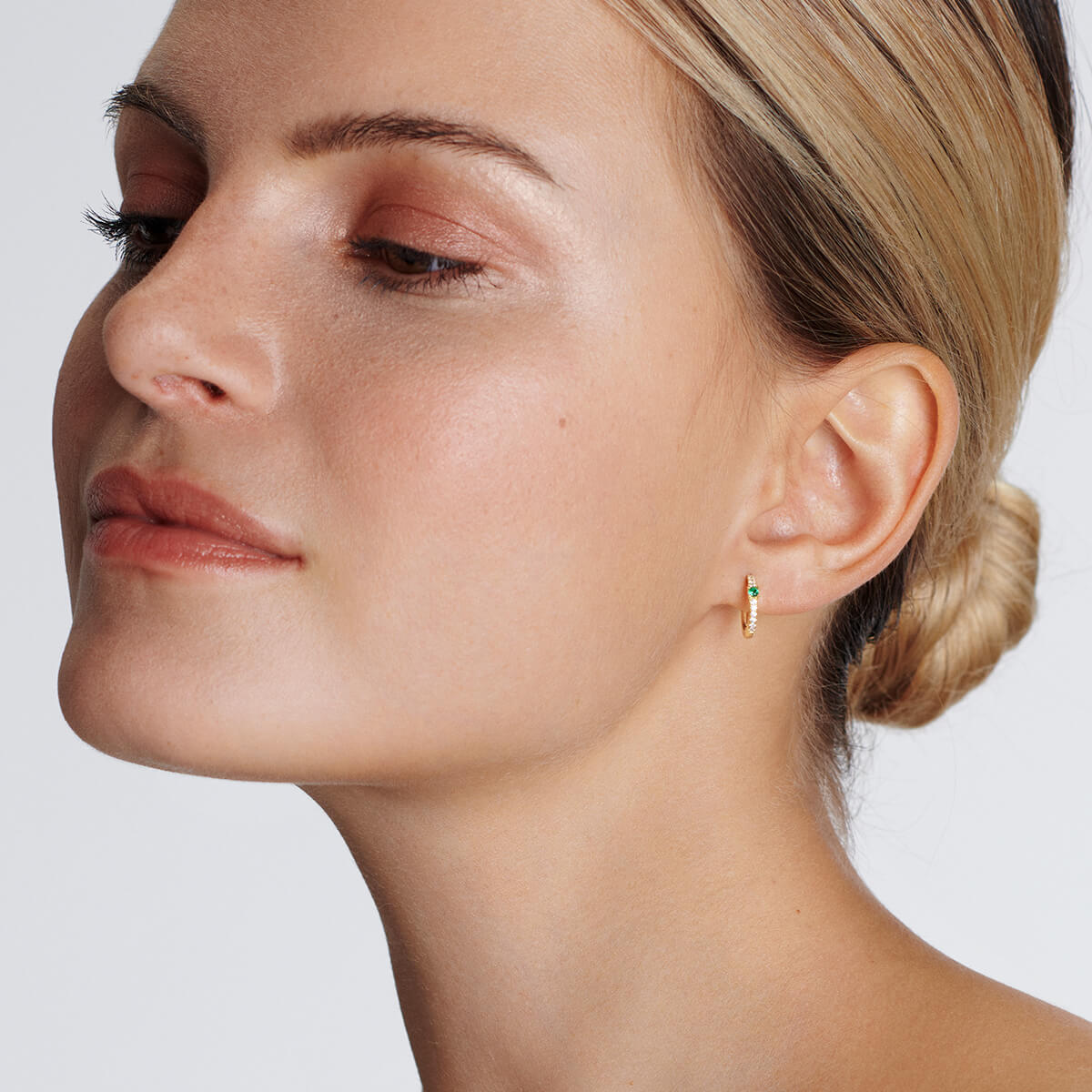 Kylee Dot Hoop Green – Single Earring – 18ct Gold-Plated