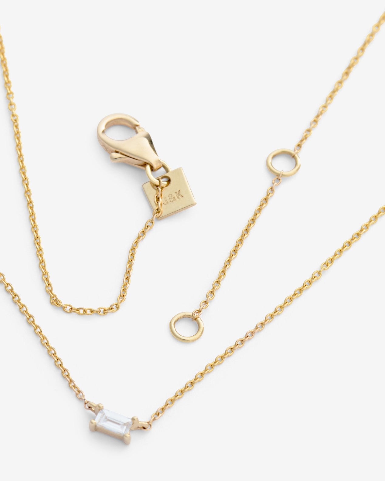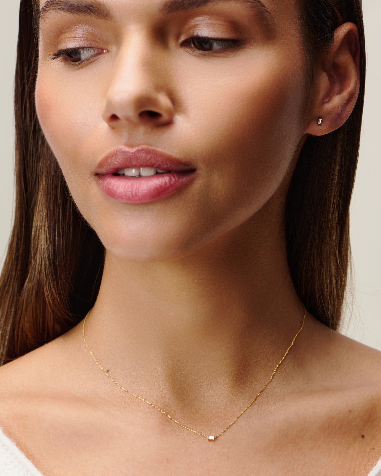 The Necklace 002 from Juuls & Karats combines timeless elegance with a delicate design. Made from fine 14ct gold, the necklace will impress you with a sparkling, non-violently extracted diamond. Perfect for any occasion, this simple yet elegant necklace adds a touch of luxury to your everyday look.
