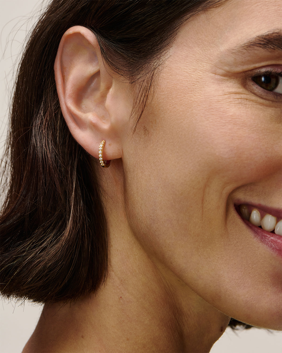 The Kylee Hoop Medi single earring from Ohh Luilu is a timeless highlight for any ear party. Made from recycled 18ct gold-plated sterling silver and adorned with sparkling zirconia, this simple earring adds an elegant sparkle to your look. Whether worn solo or combined - a versatile accessory that no jewelry collection should be without.