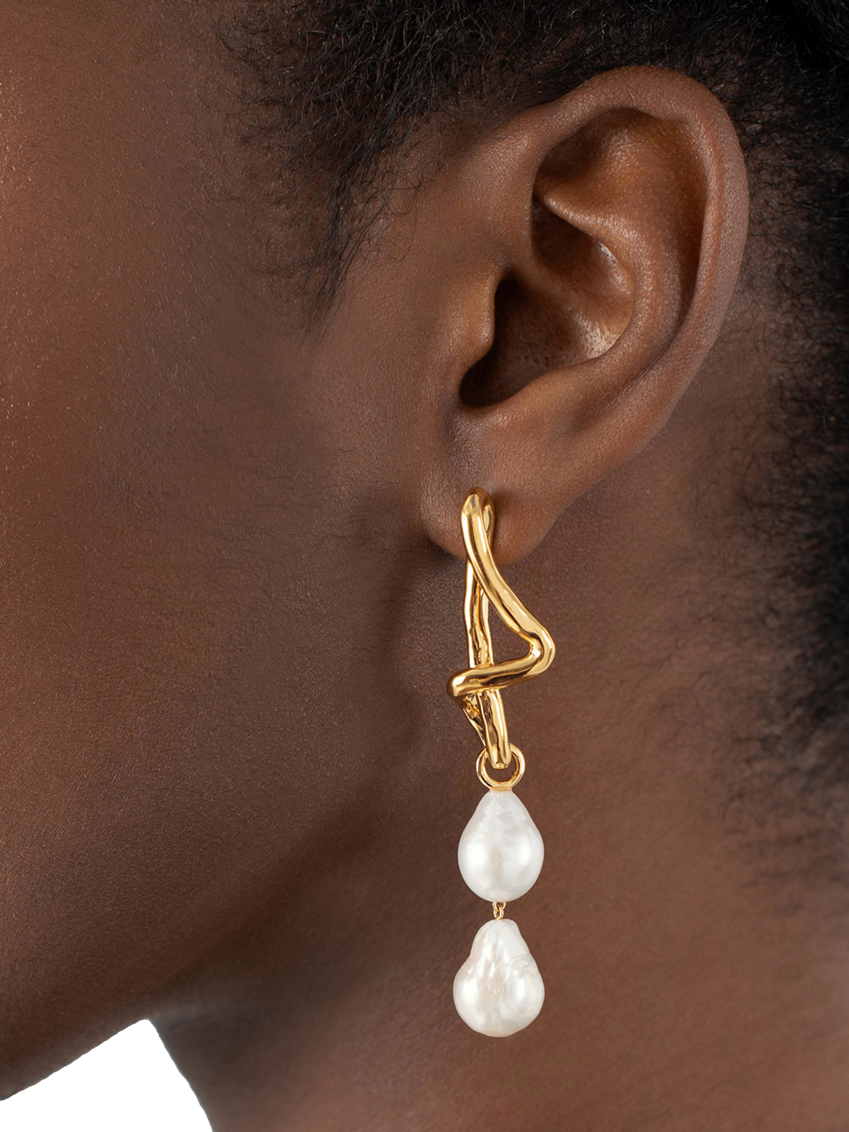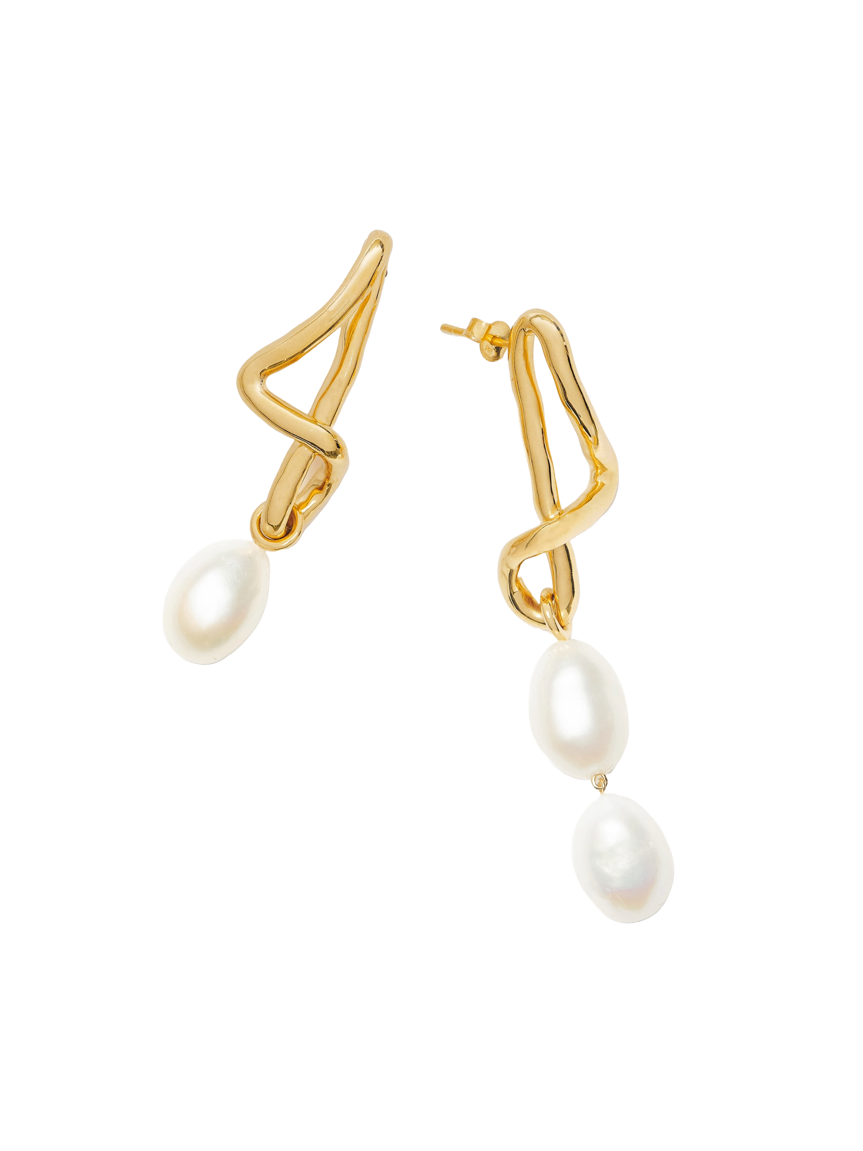 Molten Pearl – Drop & Dangle Earrings – 18kt Gold-Plated