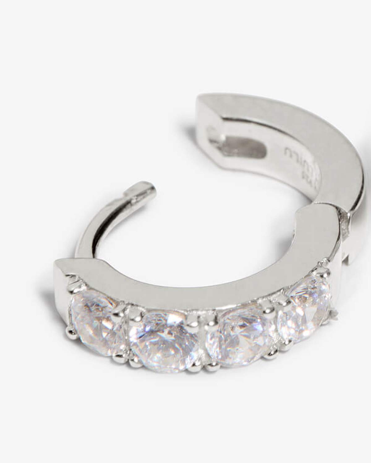 White Cubic Huggie – Single Earrings – Silver rhodium-plated