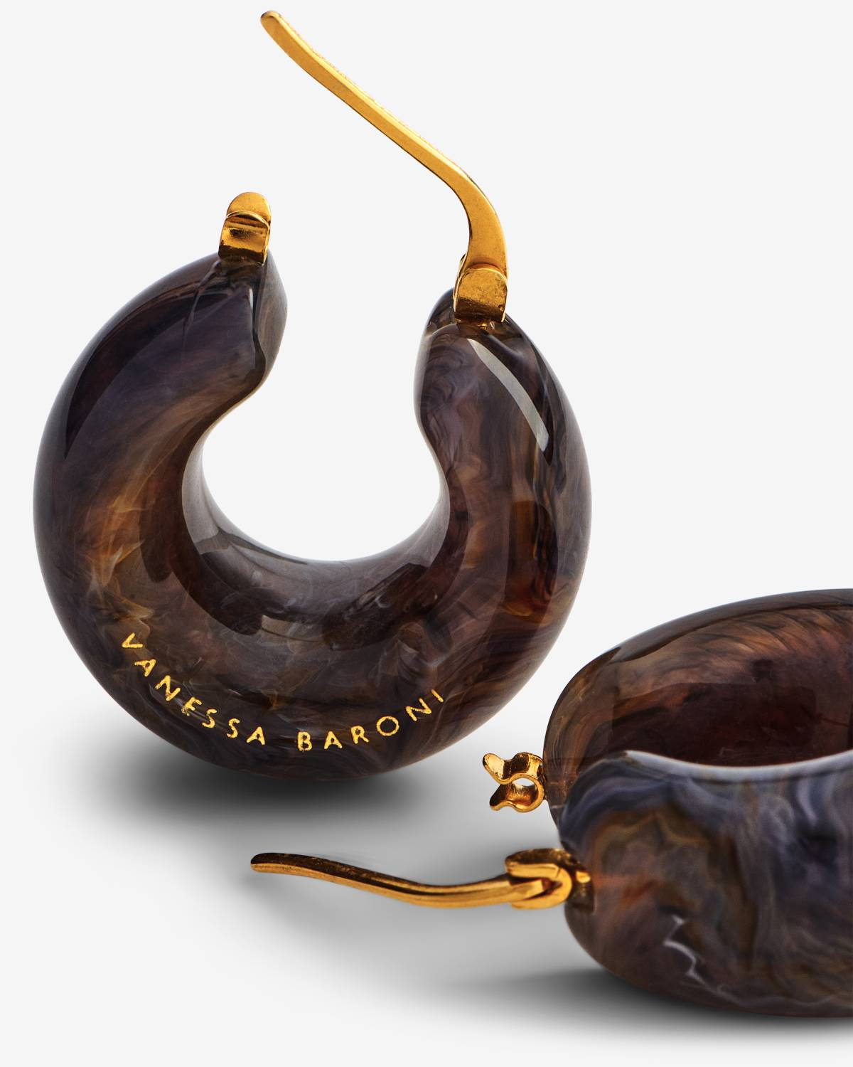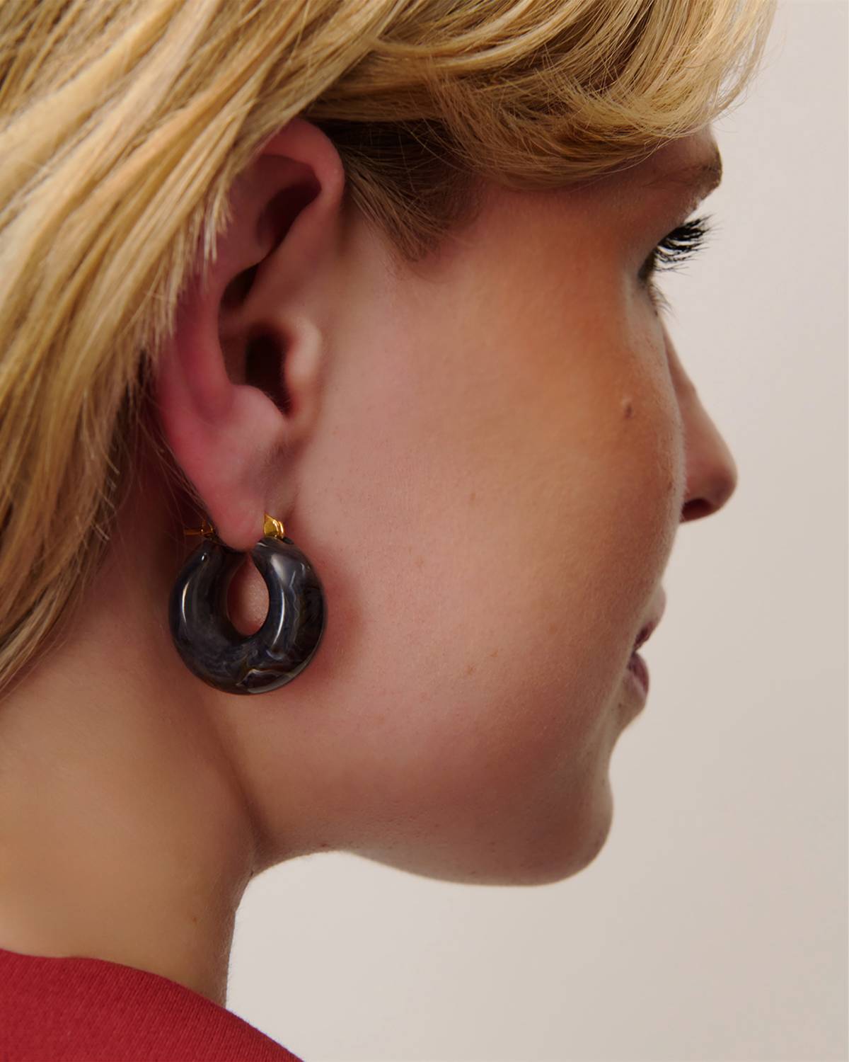 The Circlet Earring blue jeans marble is a true statement – glossy, chunky, and full of expression. The marbled denim tones feel both artistic and contemporary, while the gold detail completes the look. Jewelry that makes an impression, effortlessly.