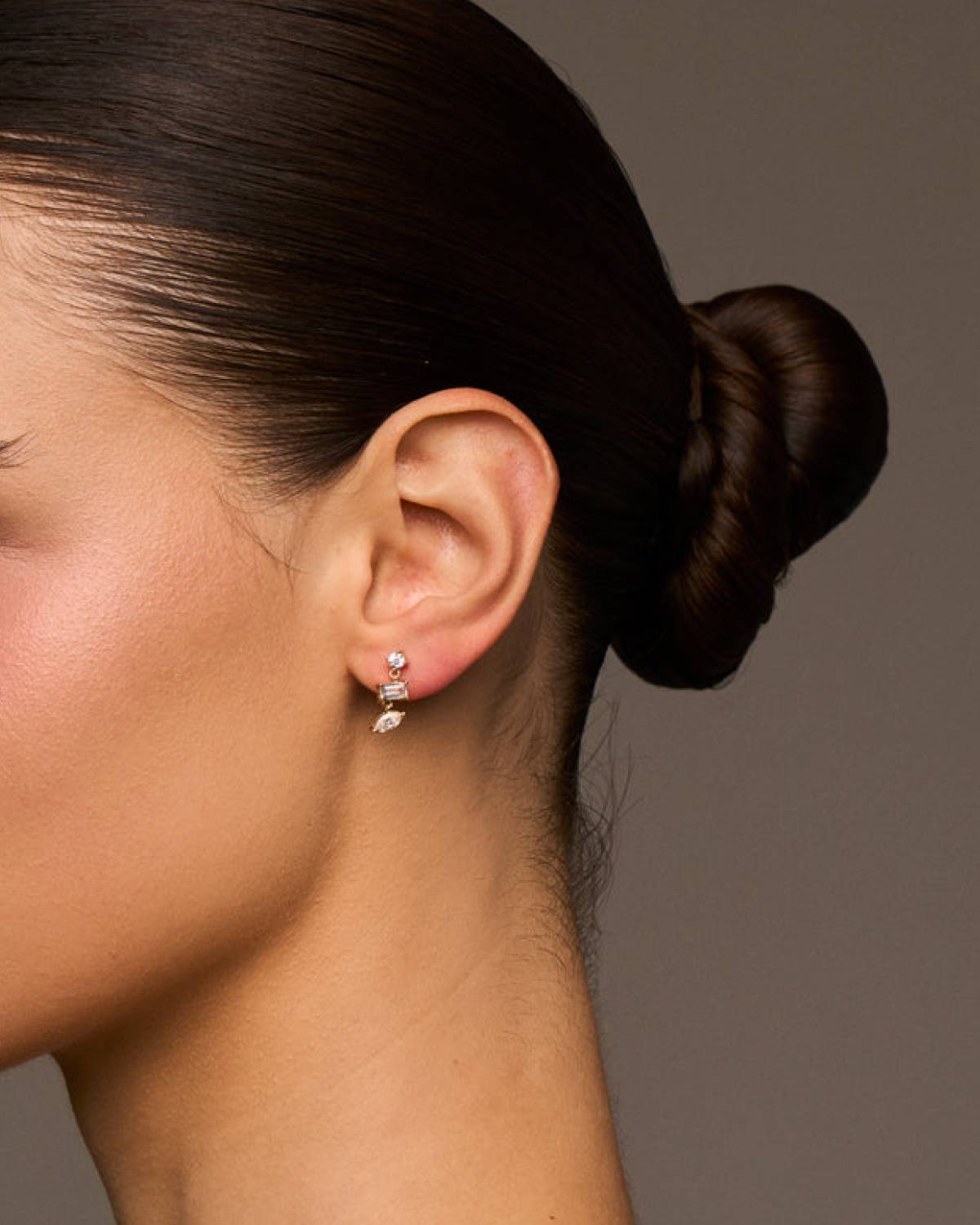 The Mavis Trio Studs showcase an intriguing play of shape and shine. Three zirconia stones in different cuts are aligned vertically, creating elegant movement with a modern twist. The 14ct gold-plated finish highlights the clean lines and enhances the brilliance of the stones – earrings that combine structure, motion, and refined sparkle.