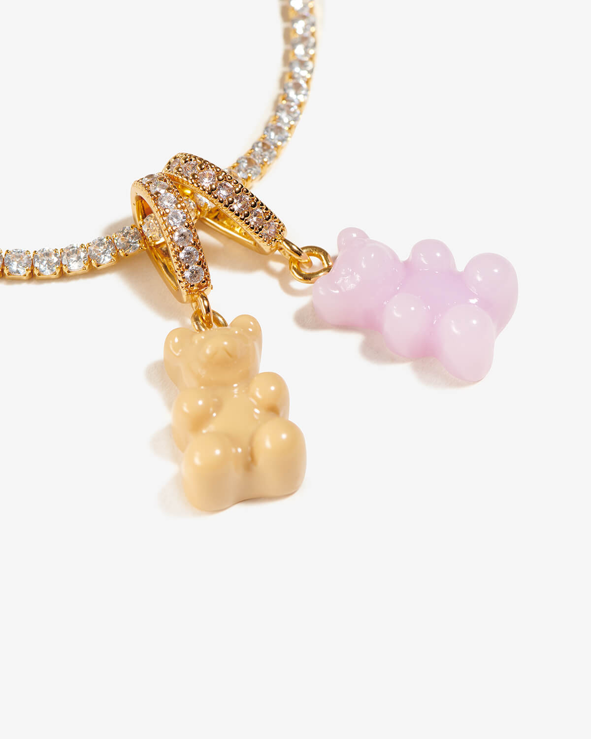 This cute pendant from Crystal Haze impresses with its nostalgic gummy bear design. It can be combined in a variety of ways to complete any outfit. Whether worn on necklaces, bracelets or anklets - the sparkling zirconia stones, the gold-plated brass and high-quality acetate make it a real eye-catcher.