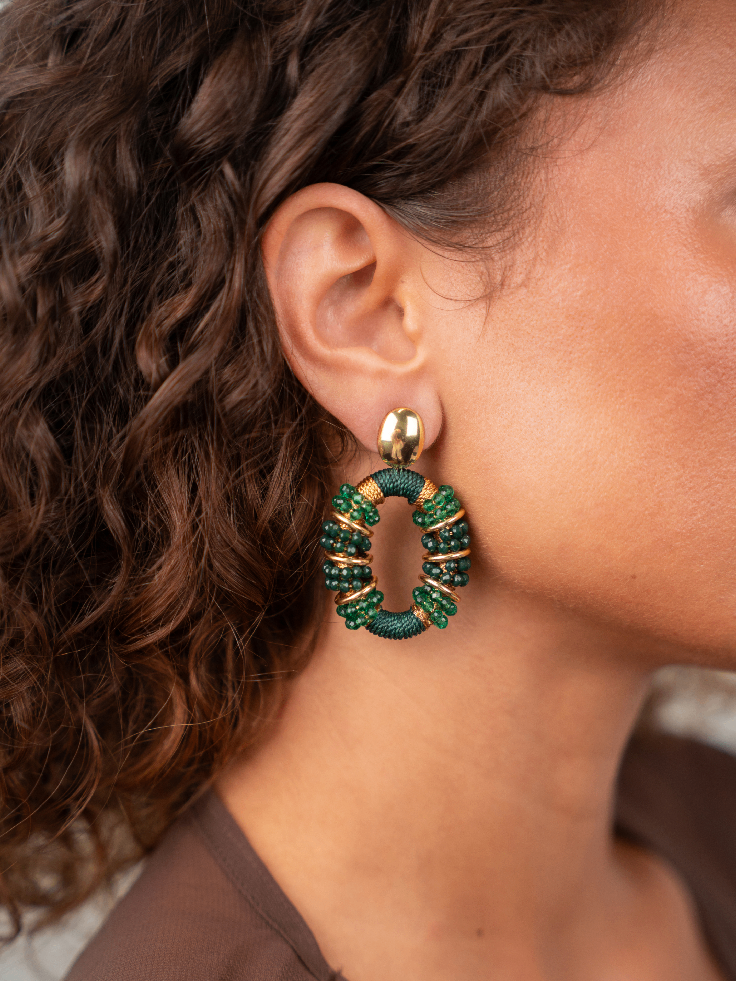 Emerald Elegance! Die Elle Combi Oval Deluxe M Emerald Ohrhänger vereinen smaragdgrüne Perlen mit funkelnden Goldakzenten in einem kunstvollen Oval-Design. Die 18kt-Vergoldung schenkt luxuriösen Glow und hebt das trendige Farbspiel besonders hervor. Ein Statement-Piece, das deinen Look chic, verspielt und absolut außergewöhnlich wirken lässt.