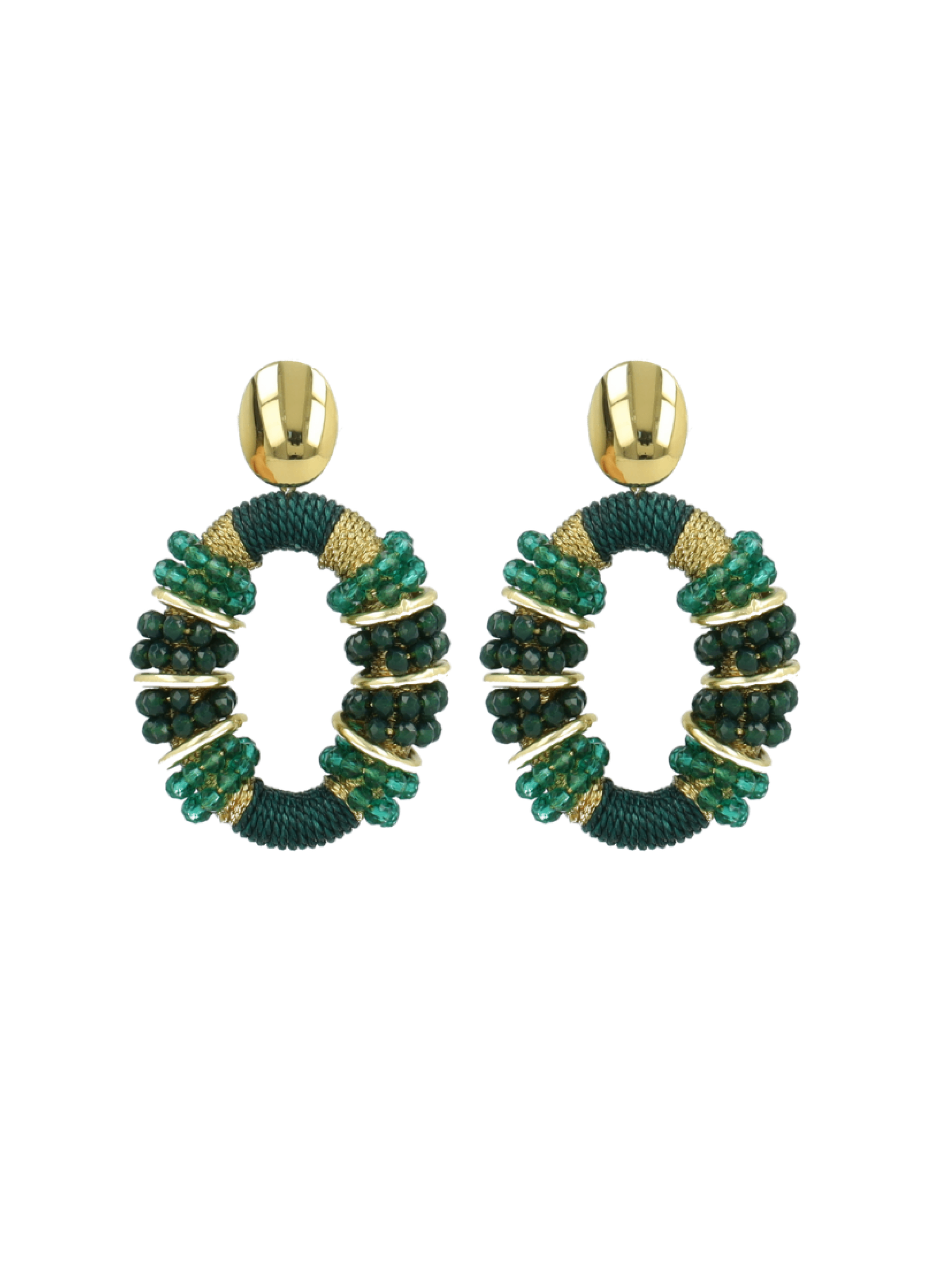 Elle Combi Oval Deluxe M Emerald - Ohrhänger - 18kt vergoldet