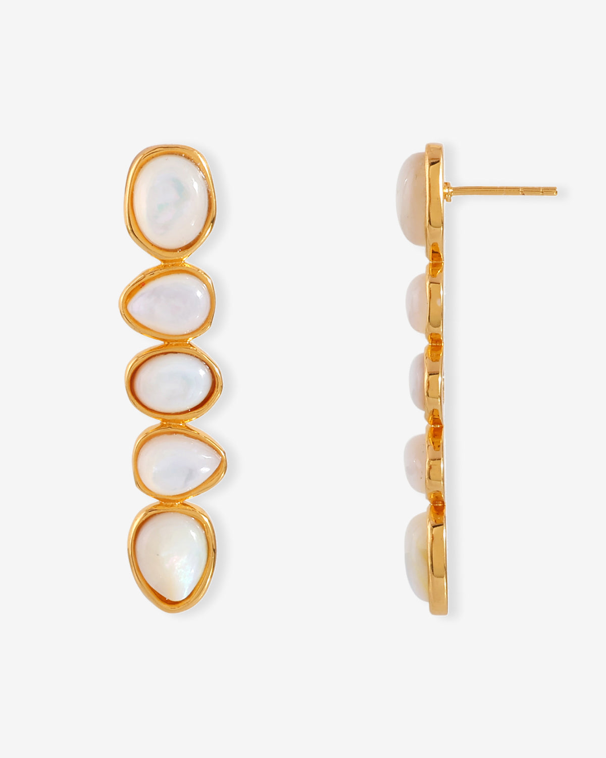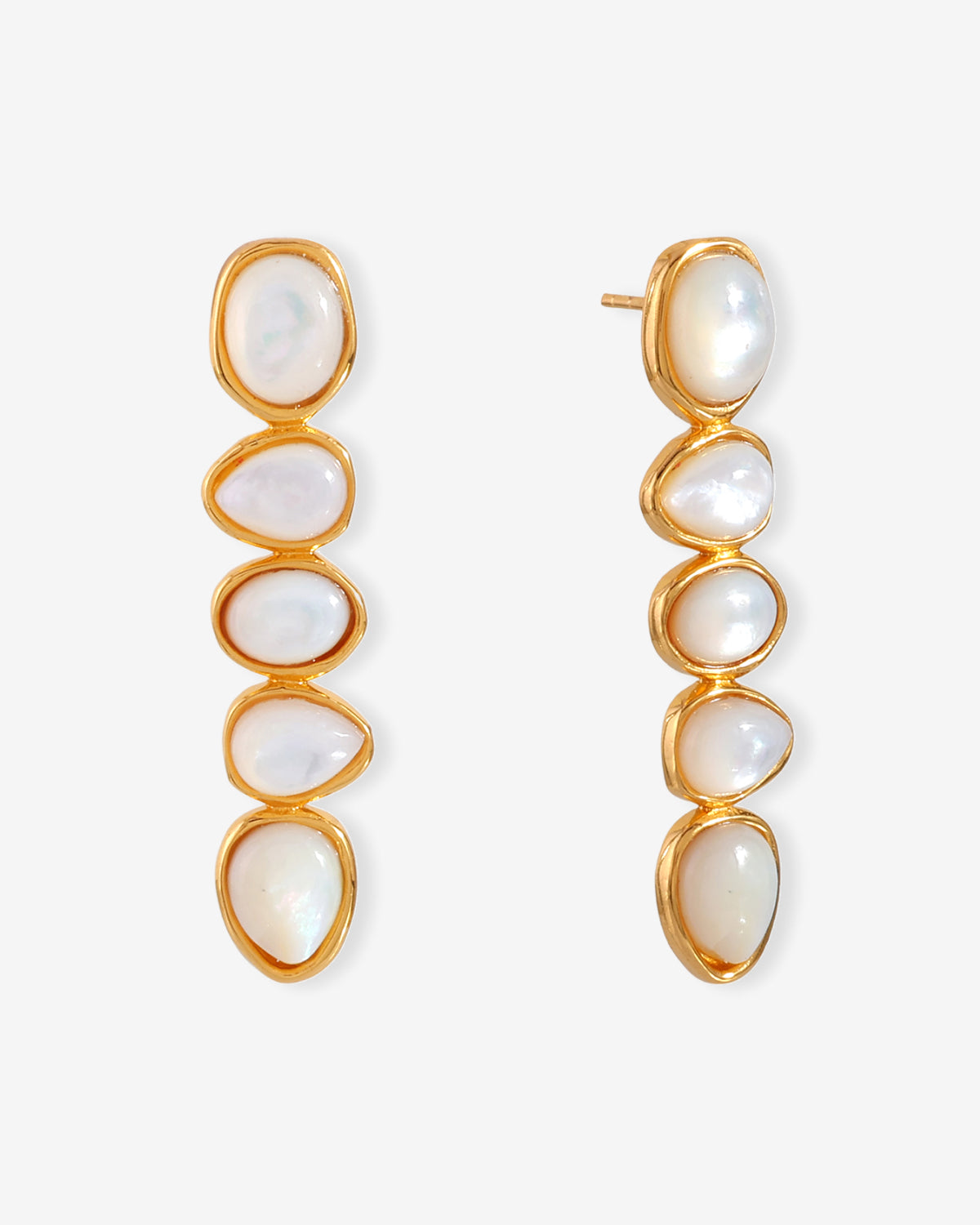 Die Portia Earrings Pearl sind ein modernes Spiel mit Klassikern. Jede Perle besitzt ihre eigene, leicht organische Form und wirkt dadurch lebendig und individuell. In 22kt vergoldetem Gold eingefasst, entsteht ein spannender Kontrast zwischen weichem Schimmer und edlem Glow.
