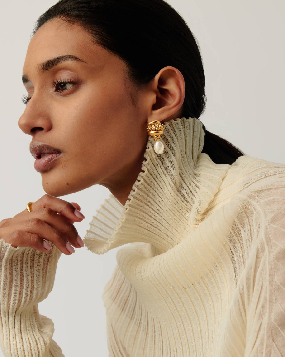 Double the Drama. Die Pearl Baya Detachable Drop Earrings von Missoma liefern maximale Styling-Power: Strukturierte Elemente aus recyceltem 18kt Gold treffen auf schimmernde Perlen-Drops – und sind abnehmbar. Trage sie als Statement-Ohrhänger oder clean & bold ohne Anhänger. Ein Piece, zwei Looks. Modern, wandelbar, unapologetically cool.