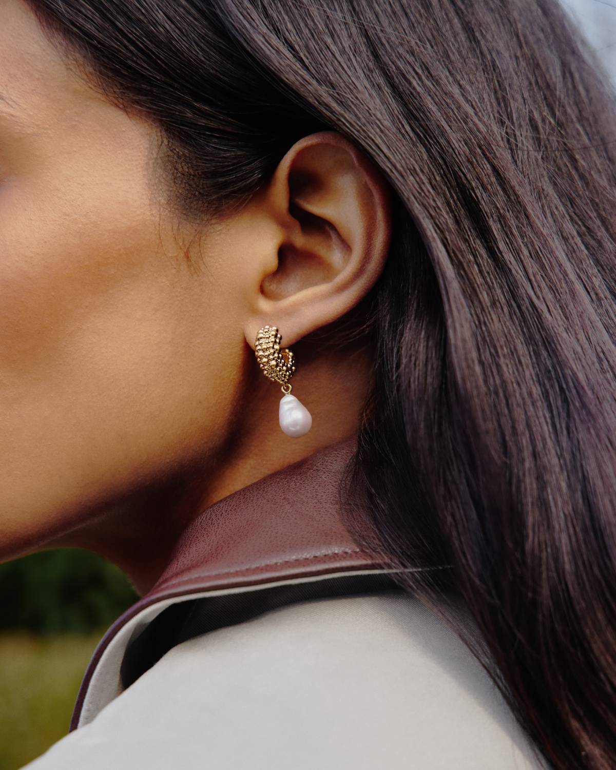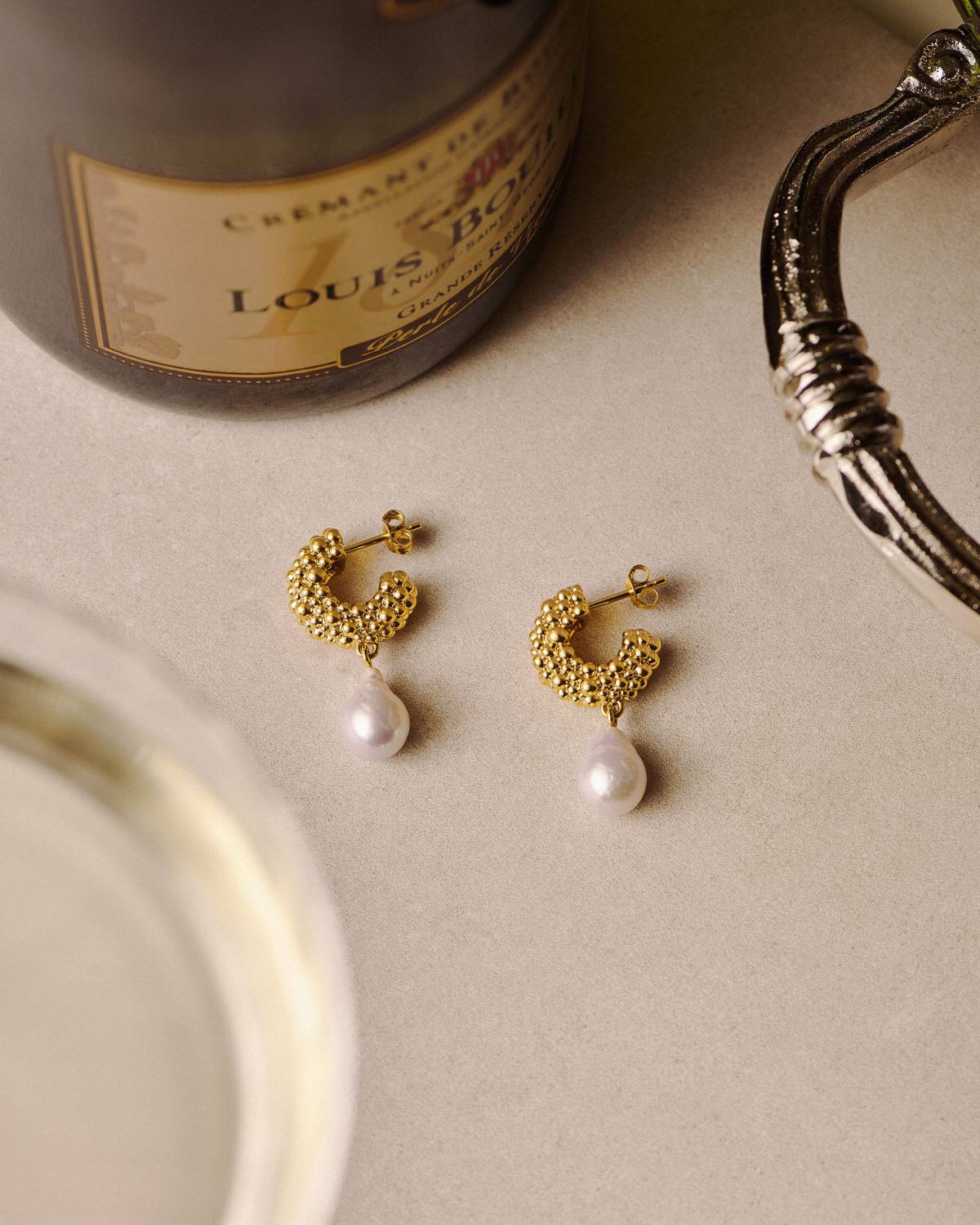 Pearl Baya Small Hoop Drop Earrings - Creolen - Recyceltes 18kt Gold