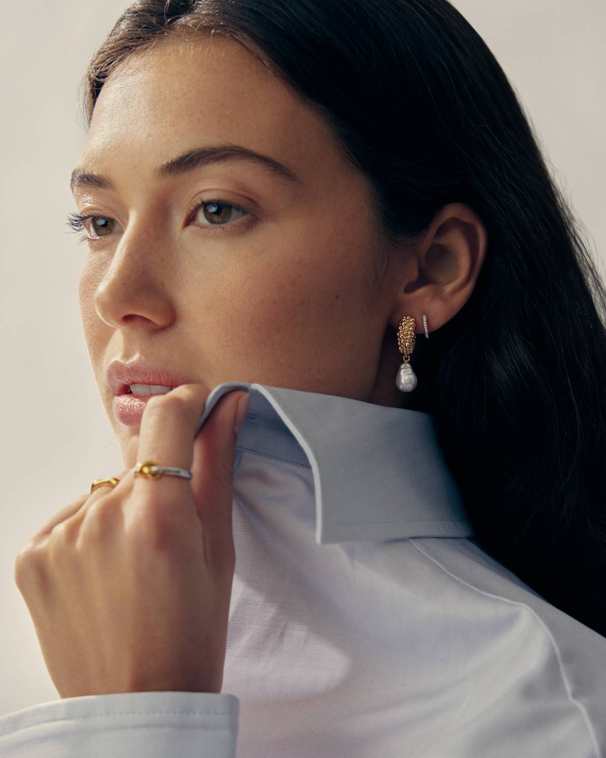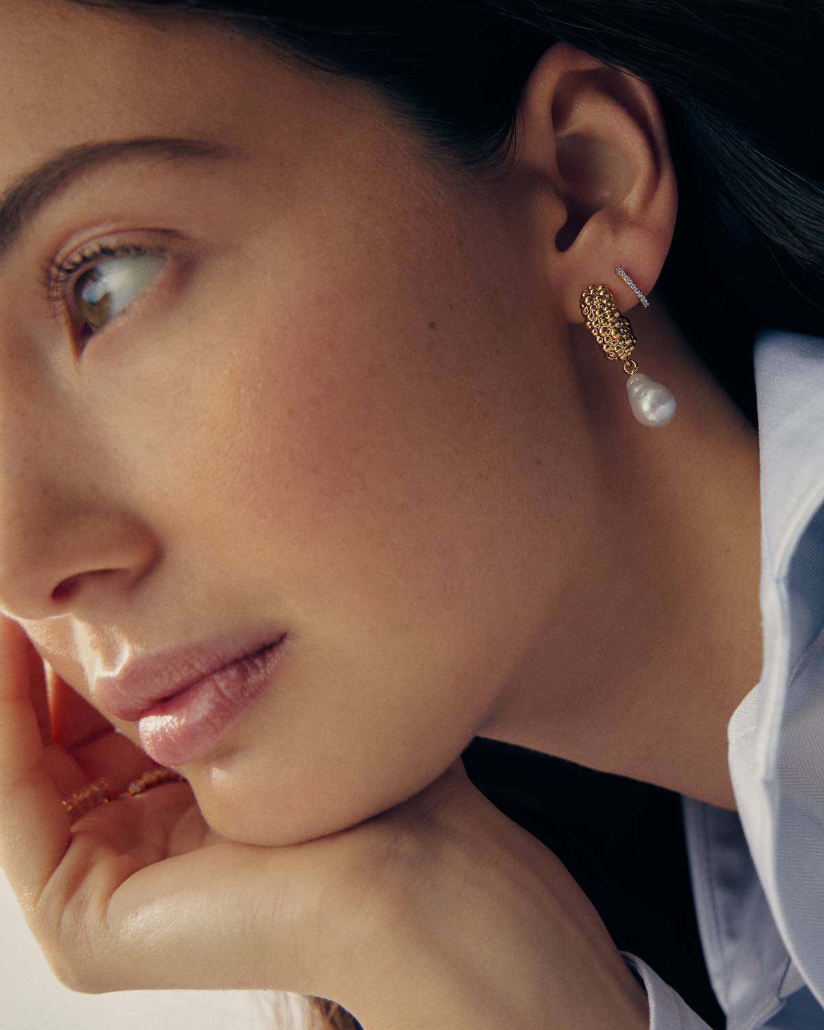 Bold Texture trifft auf soften Glow: Die Pearl Baya Small Hoop Drop Earrings von Missoma kombinieren strukturierte Mini-Creolen aus recyceltem 18kt Gold mit schimmernden Perlen-Anhängern. Modern, ausdrucksstark und voller Movement – diese Ohrringe bringen Eleganz mit Attitude in jeden Look. Dein Statement zwischen Coolness und klassischer Pearl-Vibes.
