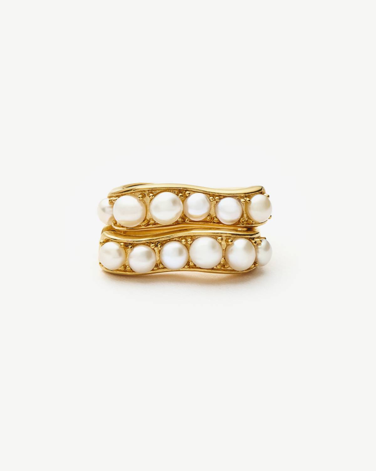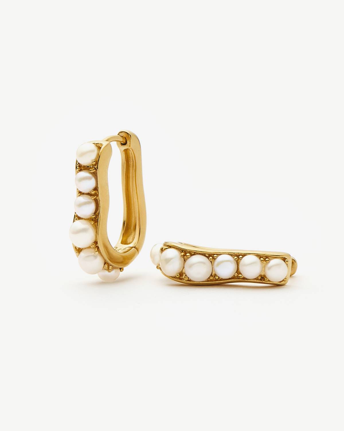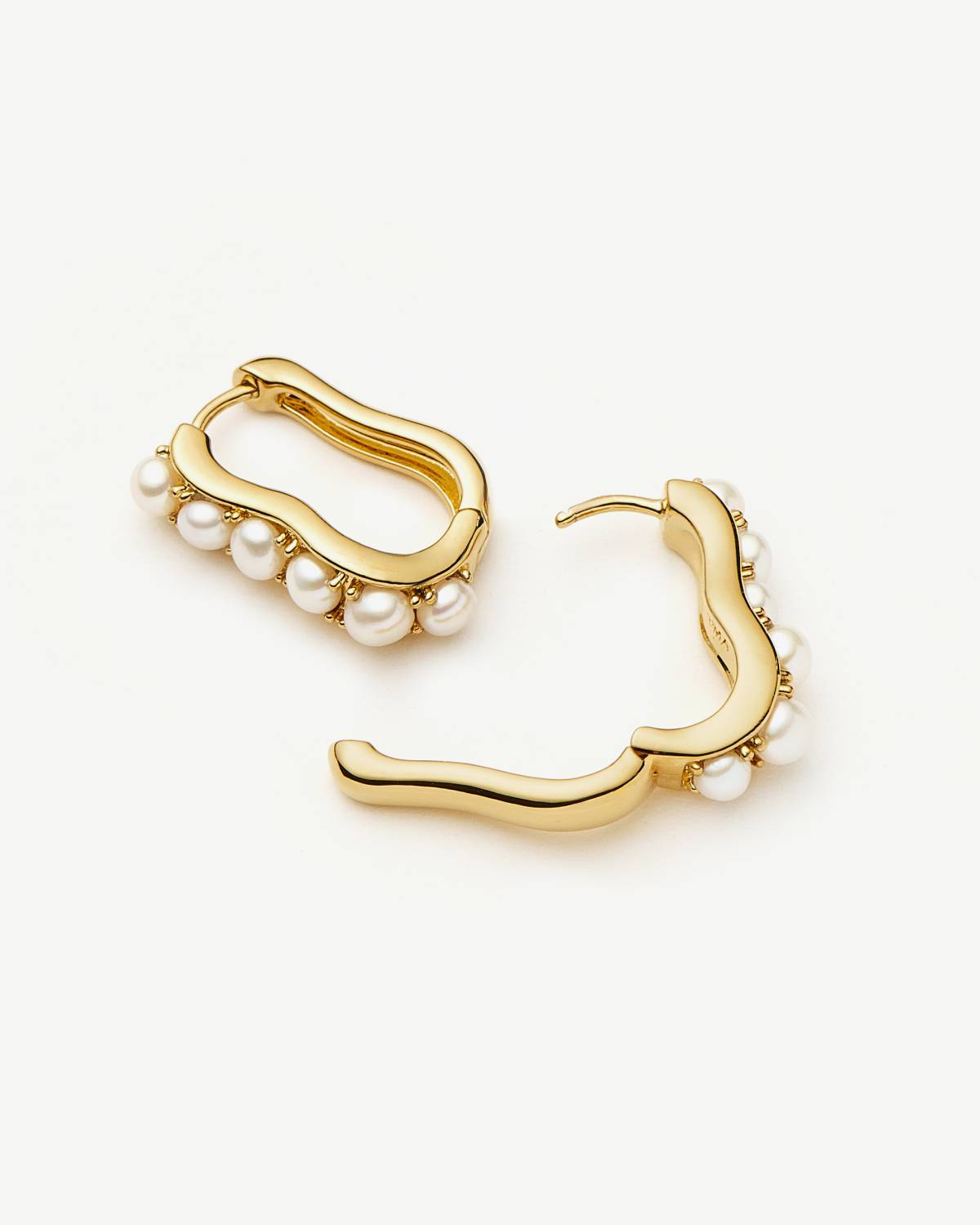 Soft Curves, strong Glow. Die Pearl Wave Small Hoop Earrings von Missoma kombinieren fließendes Design mit schimmernden Perlen-Details. Gefertigt aus recyceltem 18kt Gold Vermeil verleihen die Creolen jedem Look moderne Eleganz mit Twist. Dein Everyday-Upgrade mit subtiler Statement-Vibes.