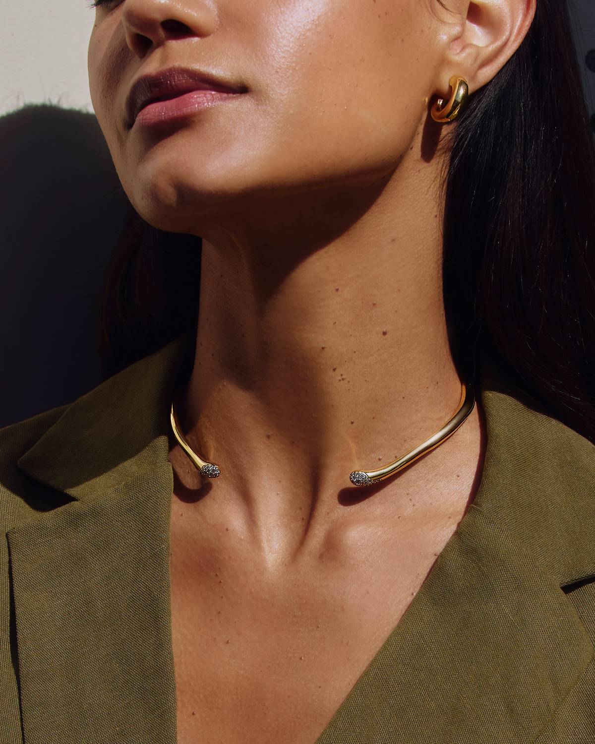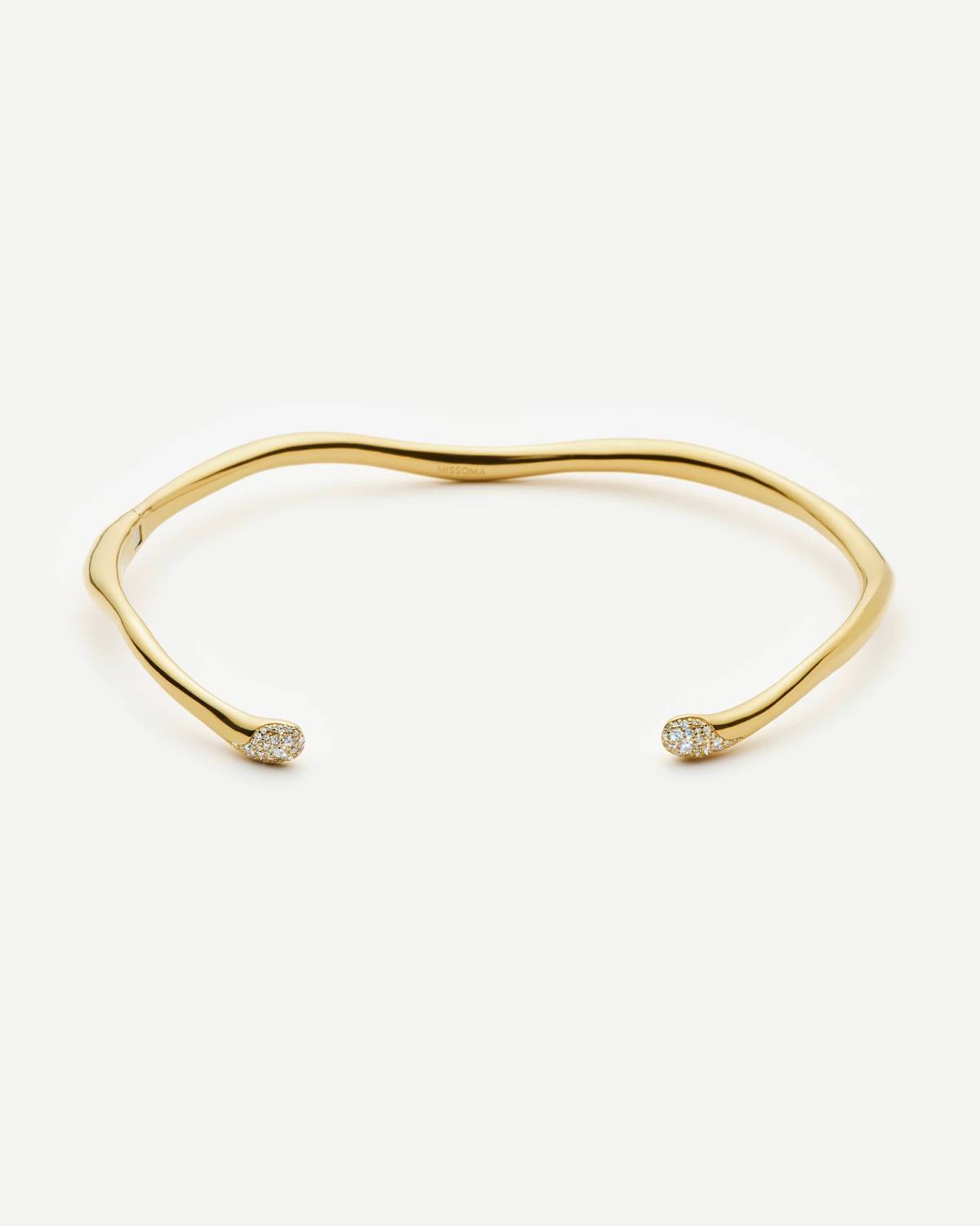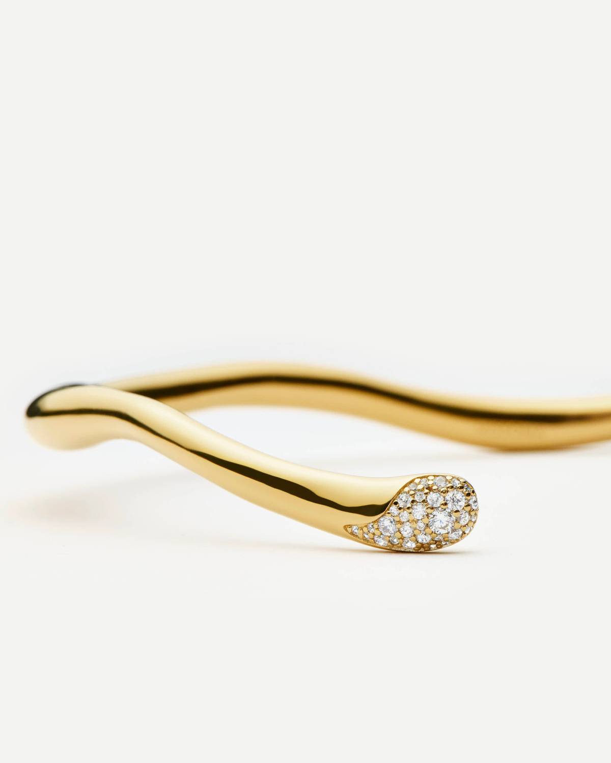 Minimalismus trifft auf Glamour: Die Molten Snow Torque Halskette überzeugt mit klaren, fließenden Linien und funkelnden Details an den Enden. Gefertigt in 18kt Vergoldung lässt sie sich dank ihrer offenen Form leicht anlegen und verleiht jedem Outfit einen modernen Twist mit eleganter Strahlkraft.