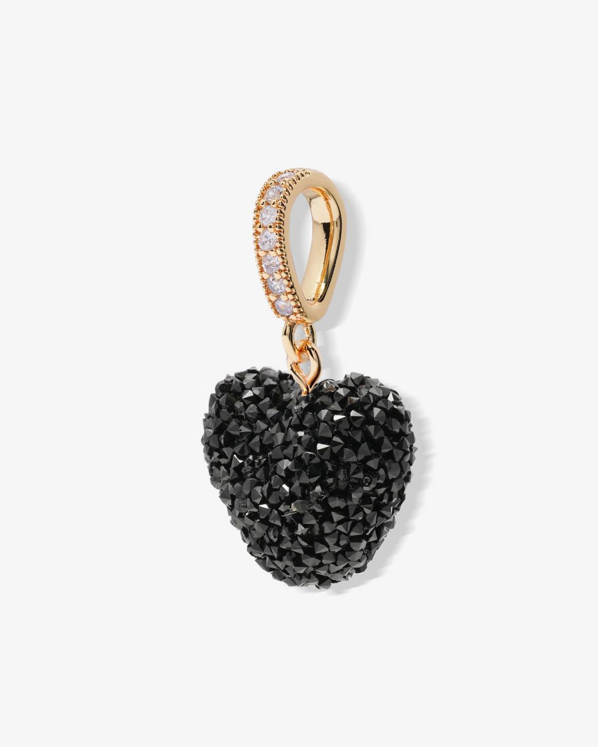 Crystal Haze Jelly Heart Pendant Midnight: Ein einzelner, 18kt vergoldeter Herz-Anhänger in tiefem Mitternachtsschwarz, mit jelly-weicher, leicht puffiger Form und feinem, samtigem Glitzer. Am Clip lässt er sich clean an Ketten oder Hoops tragen und macht aus jedem Look sofort ein süß-cooles Statement – modern, verspielt und trotzdem hochwertig-elegant.