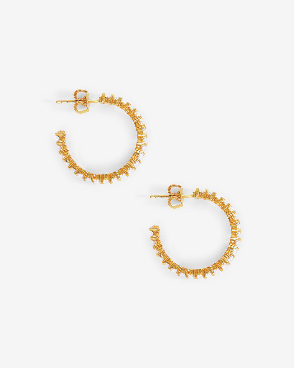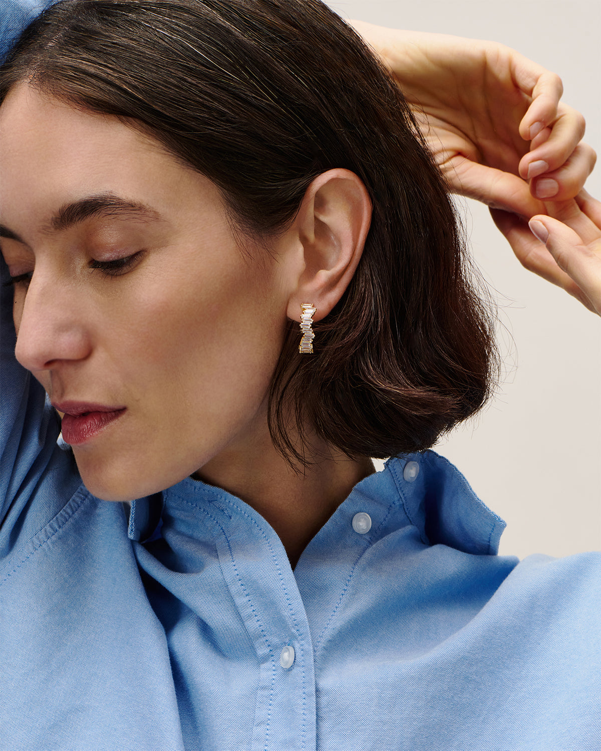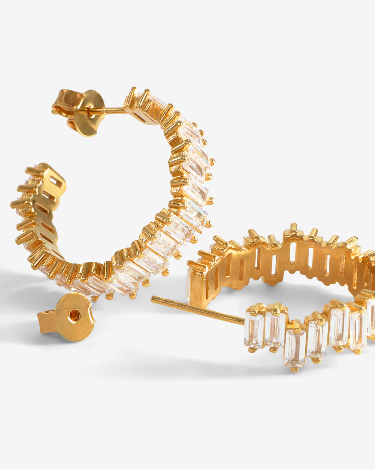 Baguette Hoops – boucles d'oreilles – plaqué or 18 carats