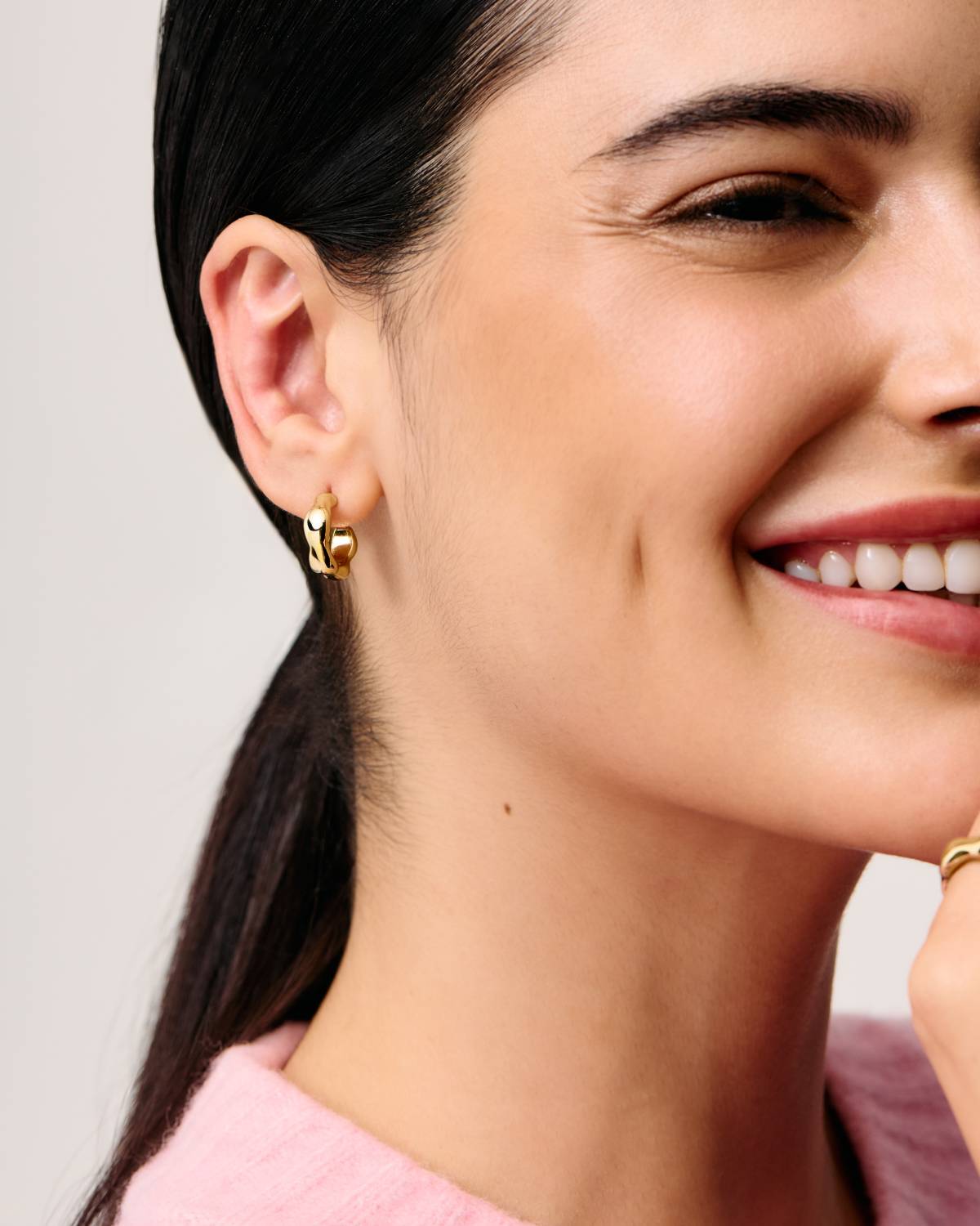 Die Elena Flow Mini Creolen von Pompidou bringen frischen Flow in deinen Look. Mit ihrer organisch geschwungenen Form und dem edlen 18kt vergoldeten Finish sind sie der perfekte Mix aus modern und elegant. Zart, aber ausdrucksstark – deine Everyday-Hoops mit stilvollem Twist und glänzendem Statement.