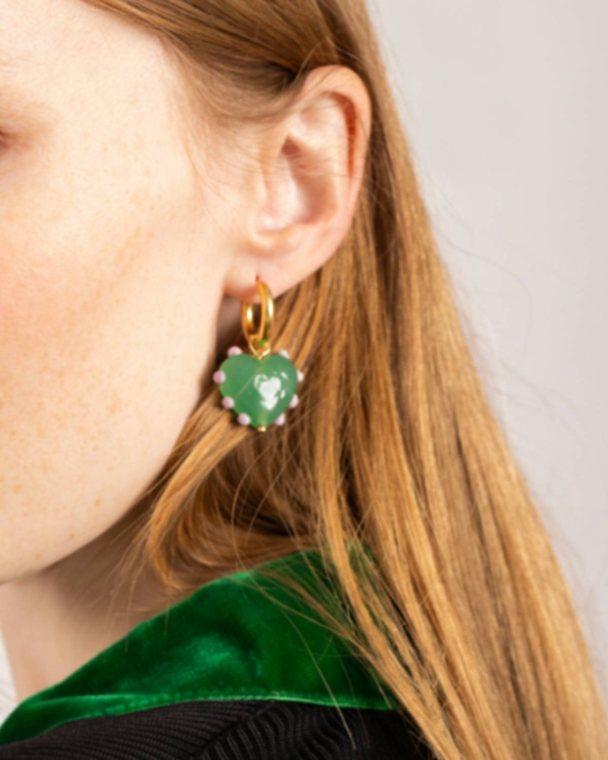 Milagros Heart Single Jade Green - Creolen - 18kt vergoldet