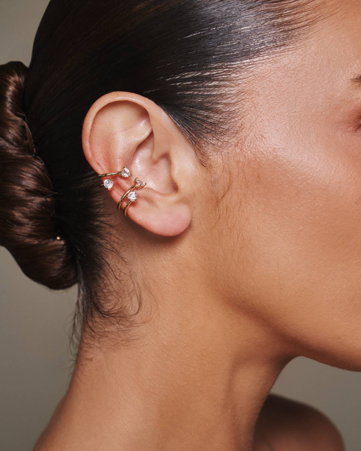Der Eraz Ear Cuff spielt mit fließenden Linien und modernem Glanz. Die organisch geschwungene Form legt sich sanft ans Ohr, während funkelnde Zirkonia entlang der 14kt vergoldeten Oberfläche gezielt Akzente setzen. Das offene Design kommt ganz ohne Piercing aus und wirkt zugleich kraftvoll und elegant – ein kreatives Statement, das Leichtigkeit und Ausdruck perfekt verbindet.