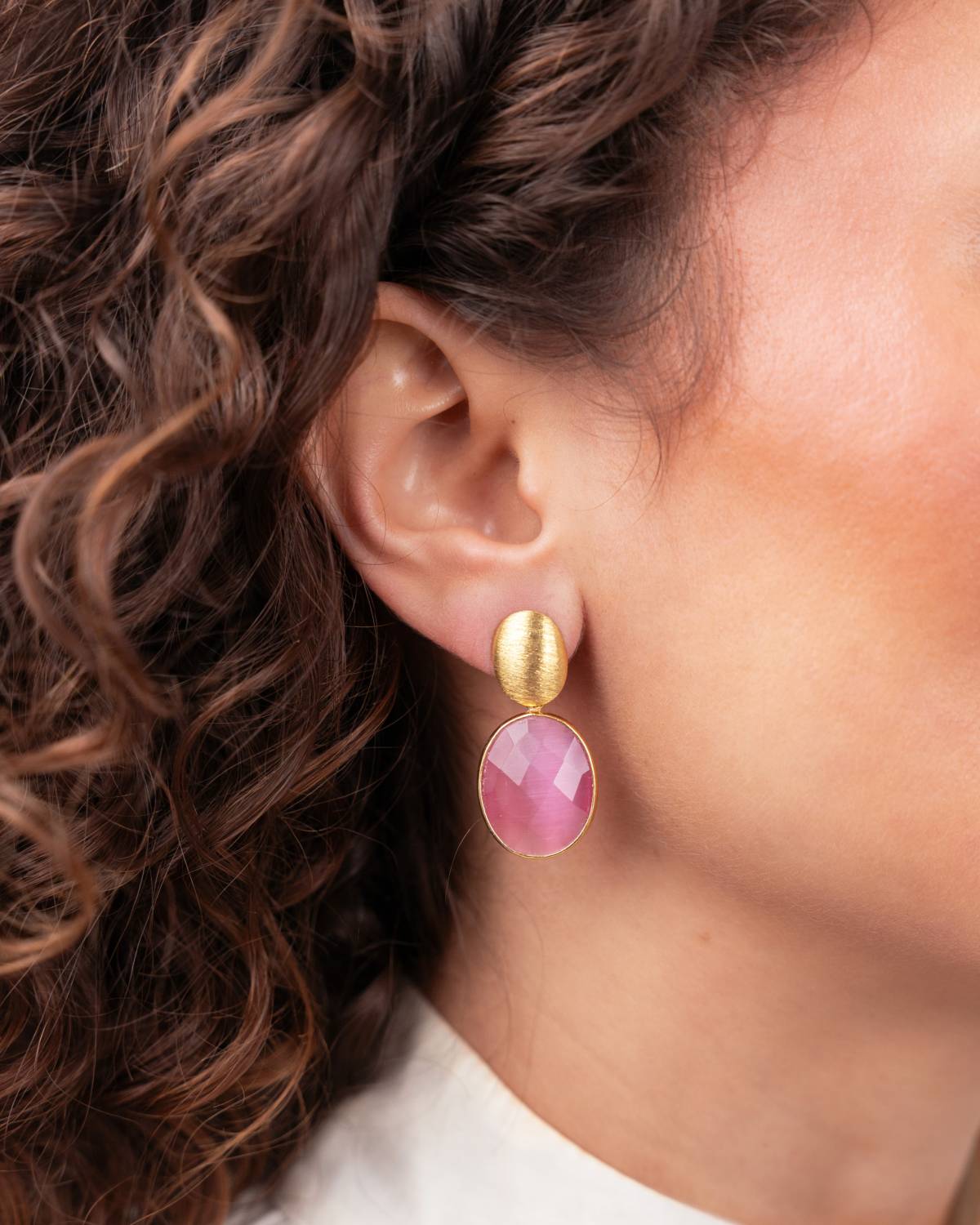 Die Giorgia Framed Oval S Berry Pink Ohrhänger in 18kt Vergoldung bringen Farbe mit fun Details: Ein zartes, berry-pinkes Oval in offener Rahmenform wird von feinen, rund geschliffenen Beads umspielt, die dem Design einen soften 3D-Effekt geben. Der schlanke Haken sorgt für leichte Bewegung und ein angenehmes Tragegefühl. Modern, verspielt und perfekt, wenn du ein frisches Pink-Statement willst.