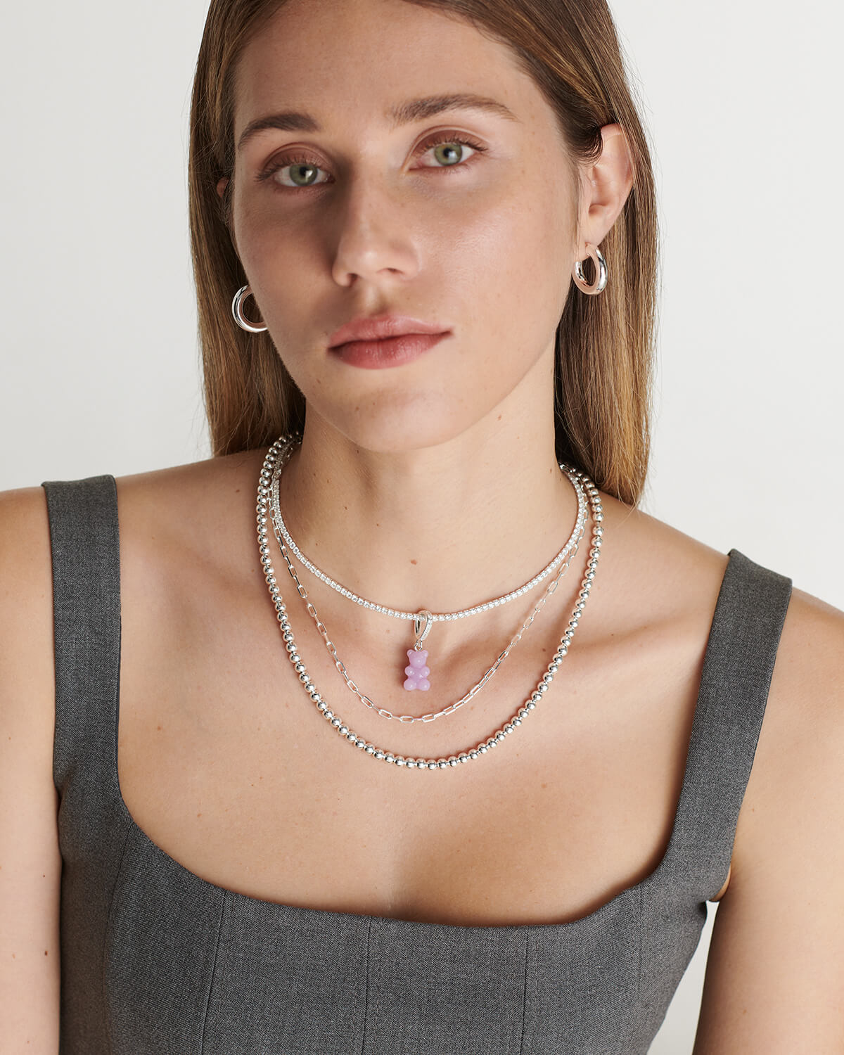 Dieser süße Kettenanhänger von Crystal Haze besticht durch das nostalgische Design eines Gummibärchens. Vielseitig kombinierbar, vervollständigt er jedes Outfit. Ob an Halsketten, Armbändern oder Fußkettchen getragen – die funkelnden Zirkoniasteine, das 925er versilberte Messing und das hochwertige Acetat machen ihn zu einem echten Hingucker.