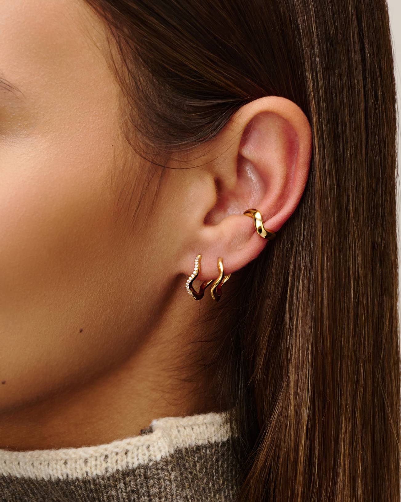 Leah ist für alle da, die Lust auf Abwechslung haben. Der Earcuff in 18kt Vergoldung setzt mit seiner organischen Linie ein Detail, das sofort auffällt. Er ist leicht anzulegen, angenehm zu tragen und bleibt immer ein bisschen besonders – ein Accessoire, das modernen Ohrschmuck spielerisch erweitert.