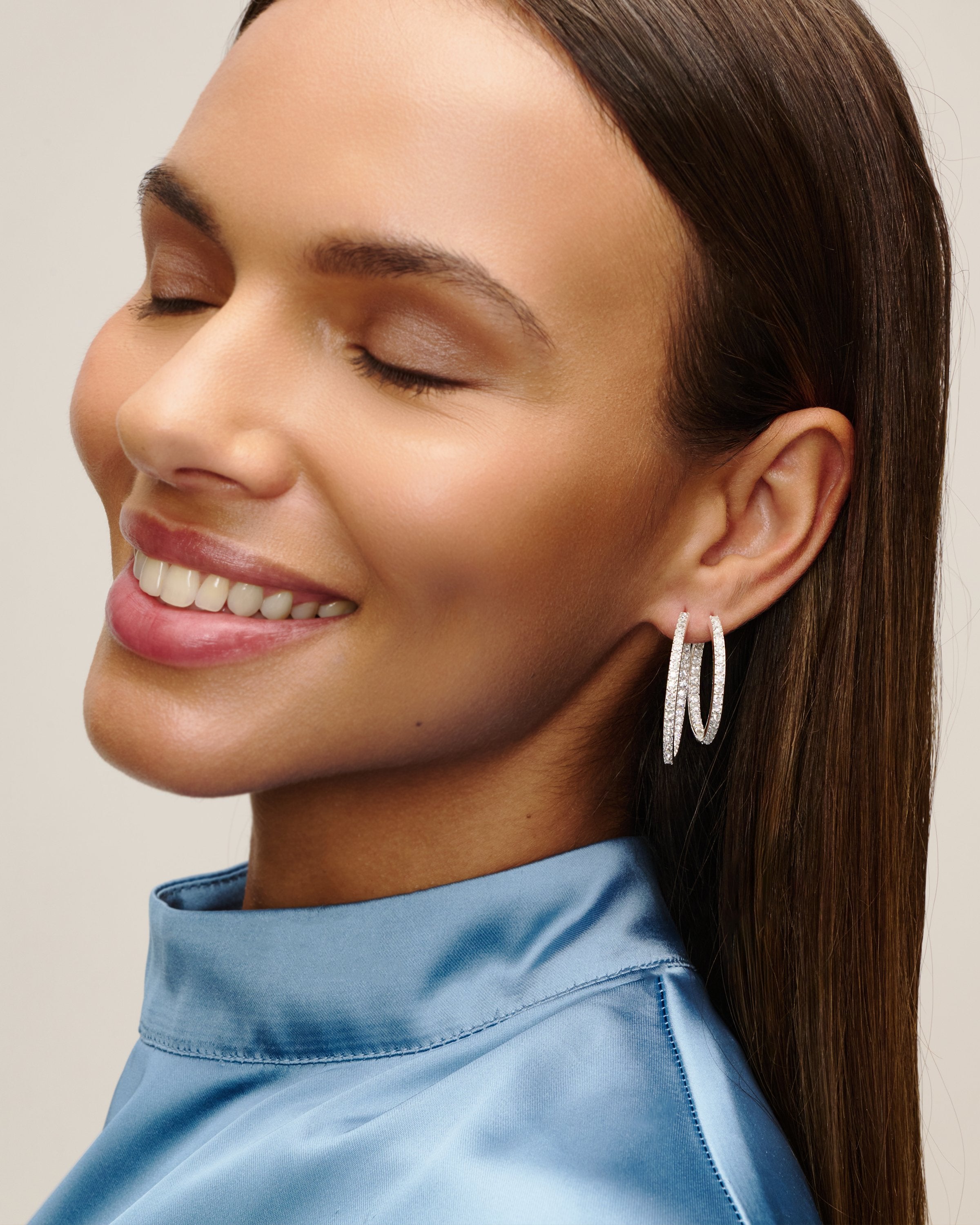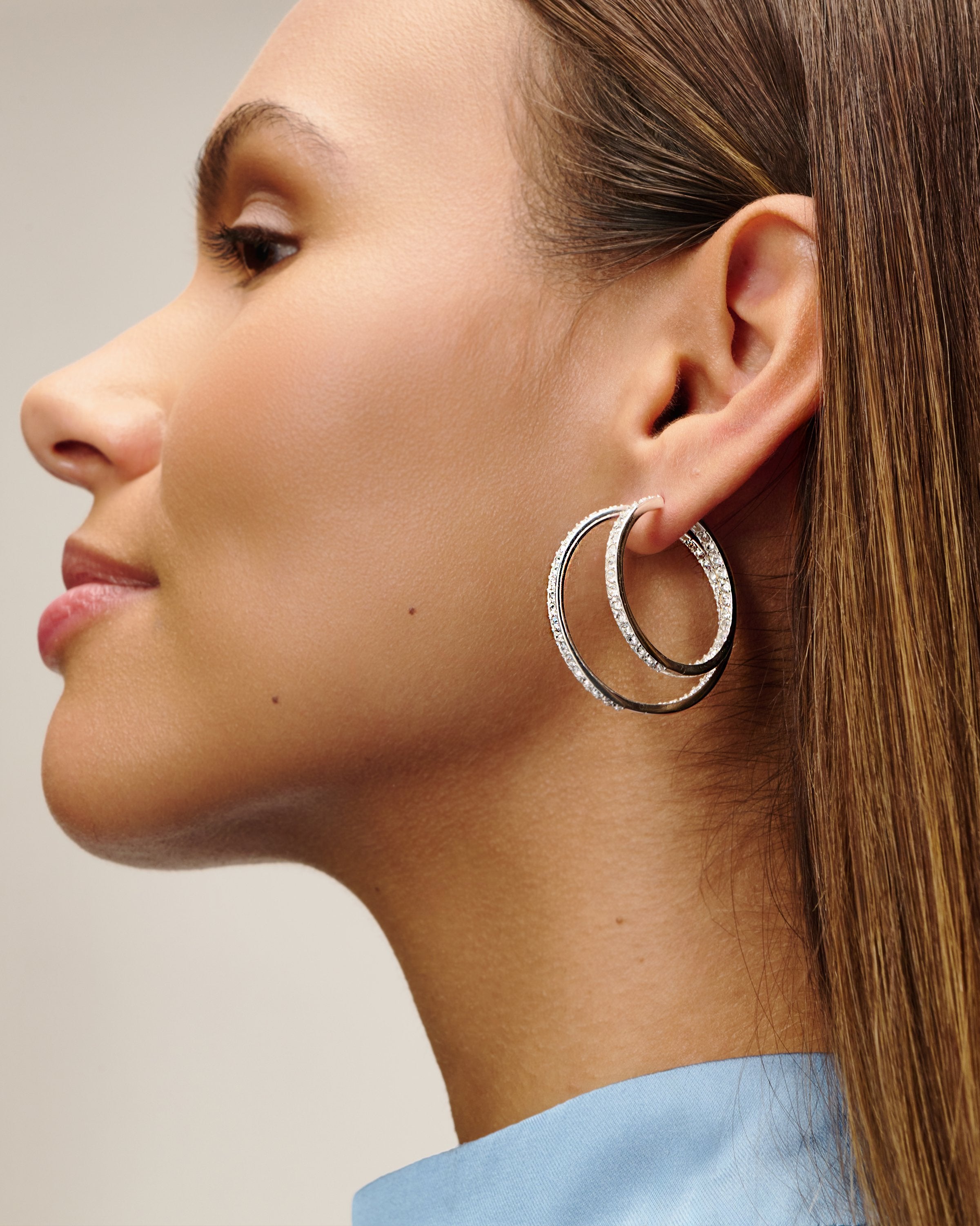 Diese Hoops von Pompidou fallen durch ihre klassische Formgebung und die edlen Zirkonia-Steine sofort auf. Mit diesen hochwertigen Creolen aus Sterlingsilber 925 lässt sich spielend leicht eine trendstarke Ear Party mit Earcuffs und Ohrsteckern kreieren. Damit liegt die stilbewusste Frau voll im Instagram-Trend und zeigt sich sowohl cool und lässig als auch elegant zum passenden Outfit.